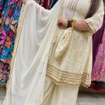 Work Type : Lucknowi Chikan Kadai On Hand & Original Mirror Work With Matching Potli Dupatta.