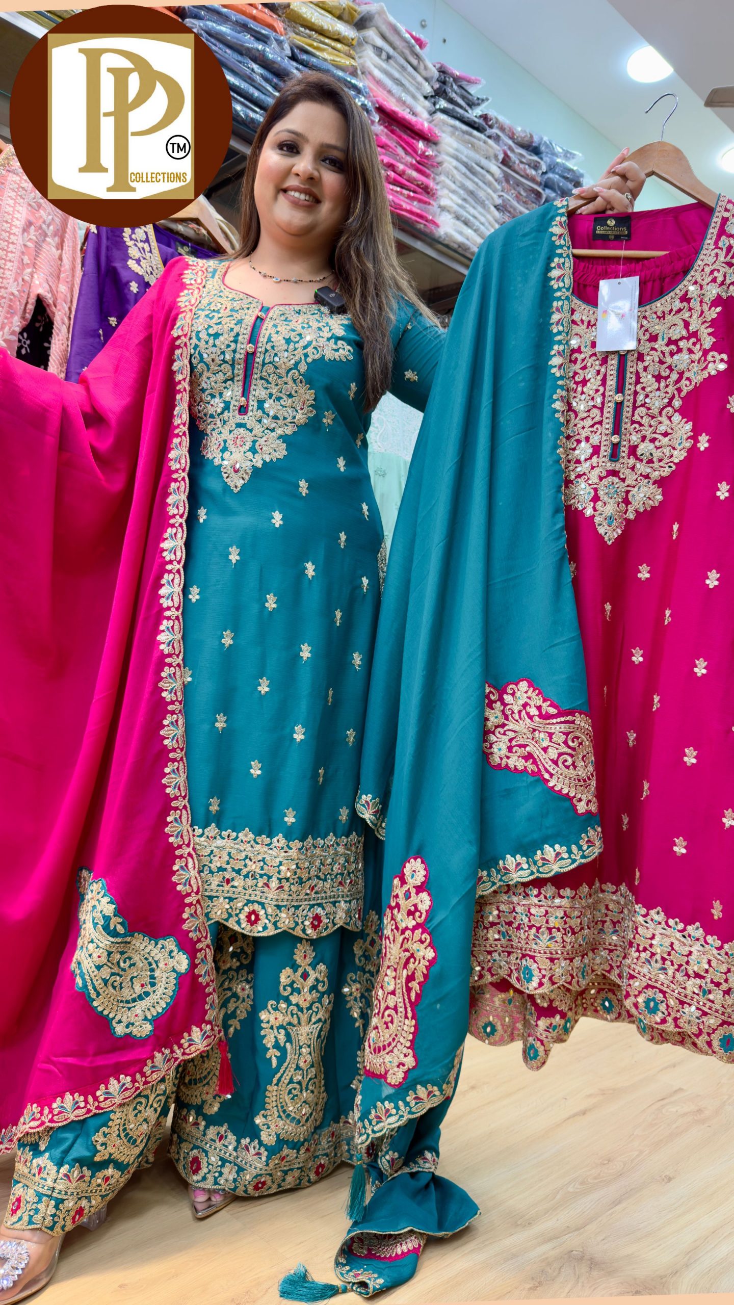 Work Type : Zari Original Mirror & Hand Work With Matching Contrast Dupatta.