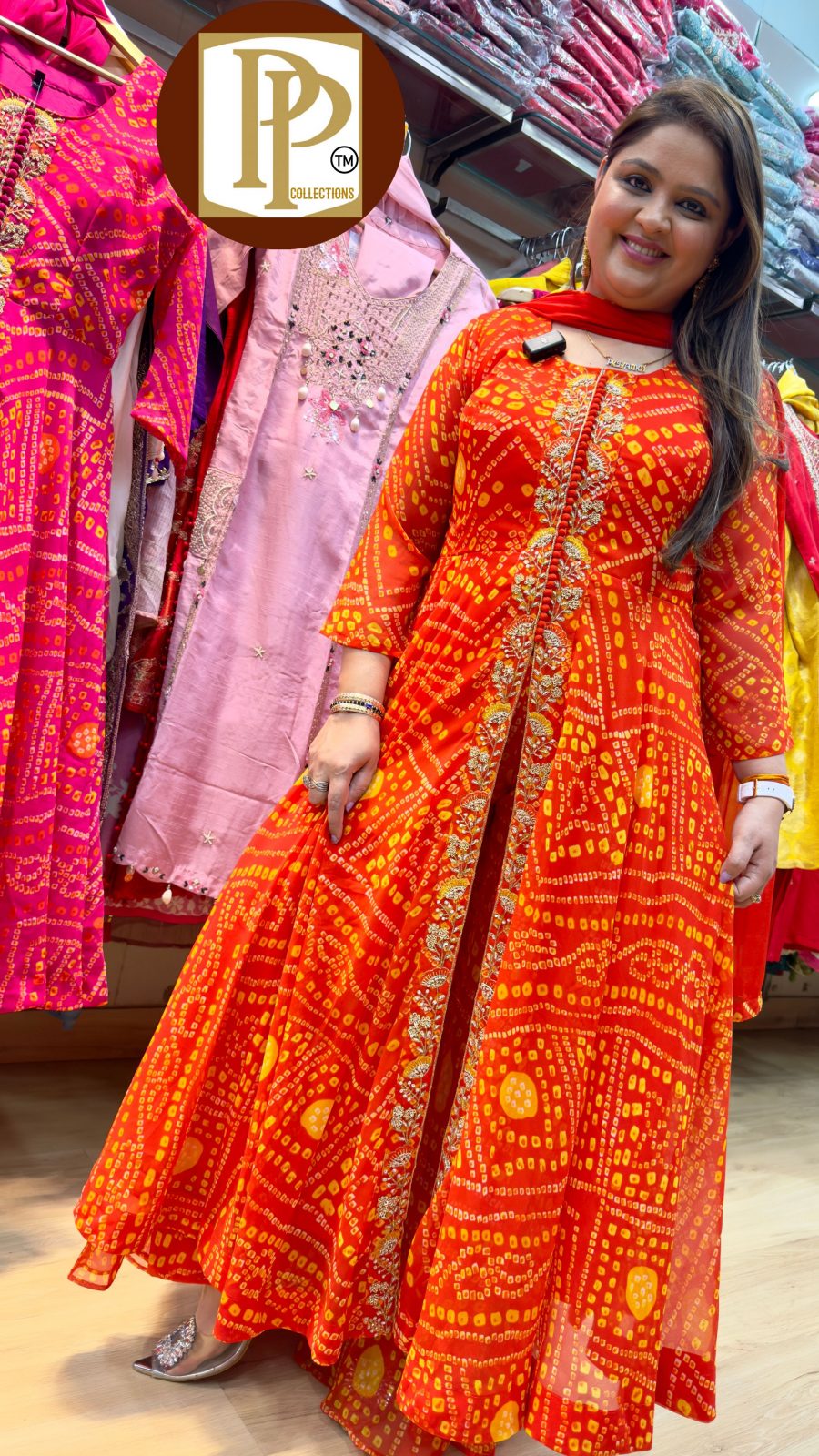 Work Type : Bandehij Print On Hand Work With Matching Plain Dupatta.