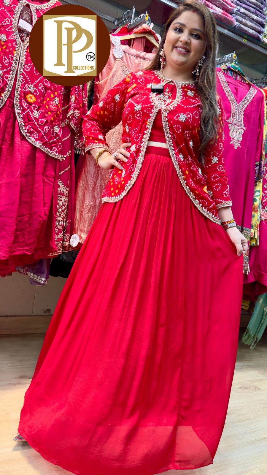 Work Type : Havey Hand Work in jacket With Matching skirt.