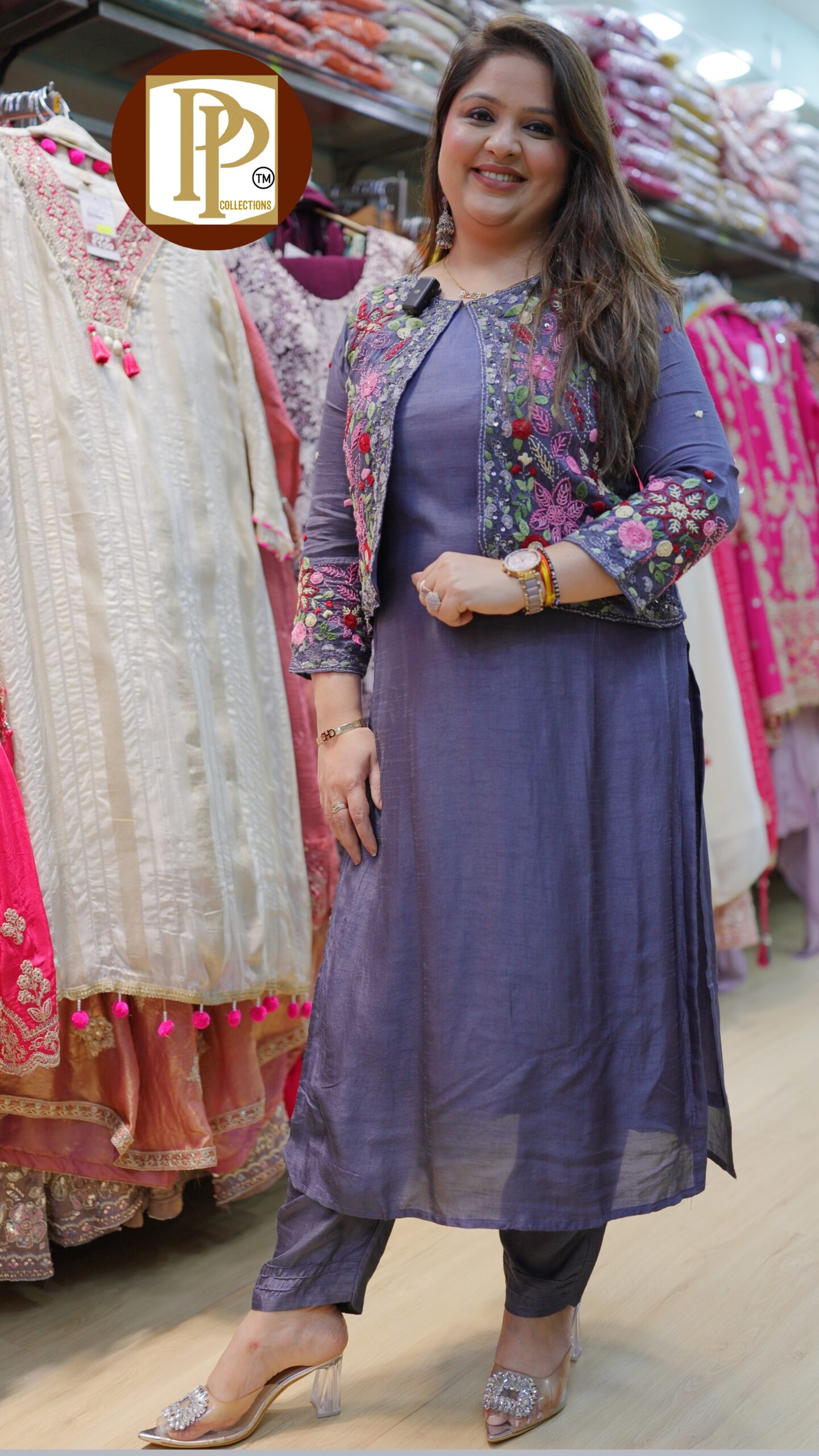 Work Type : heavy Kantha work handwork in detachable jacket & matching pants.