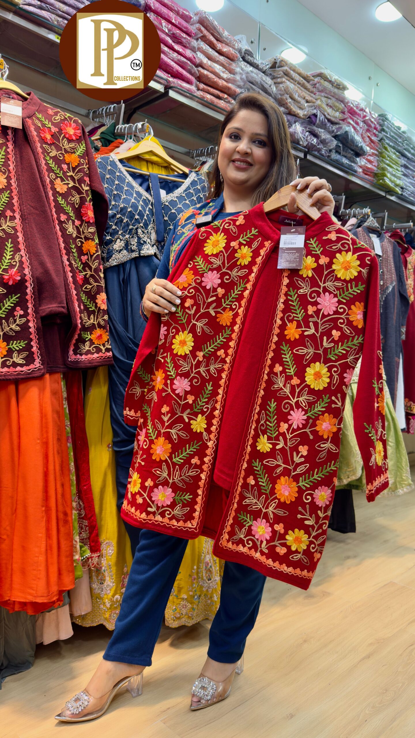 Work Type : Plane Iner & Pant With Matching Kashmiri Embroidery Detachable Jacket.