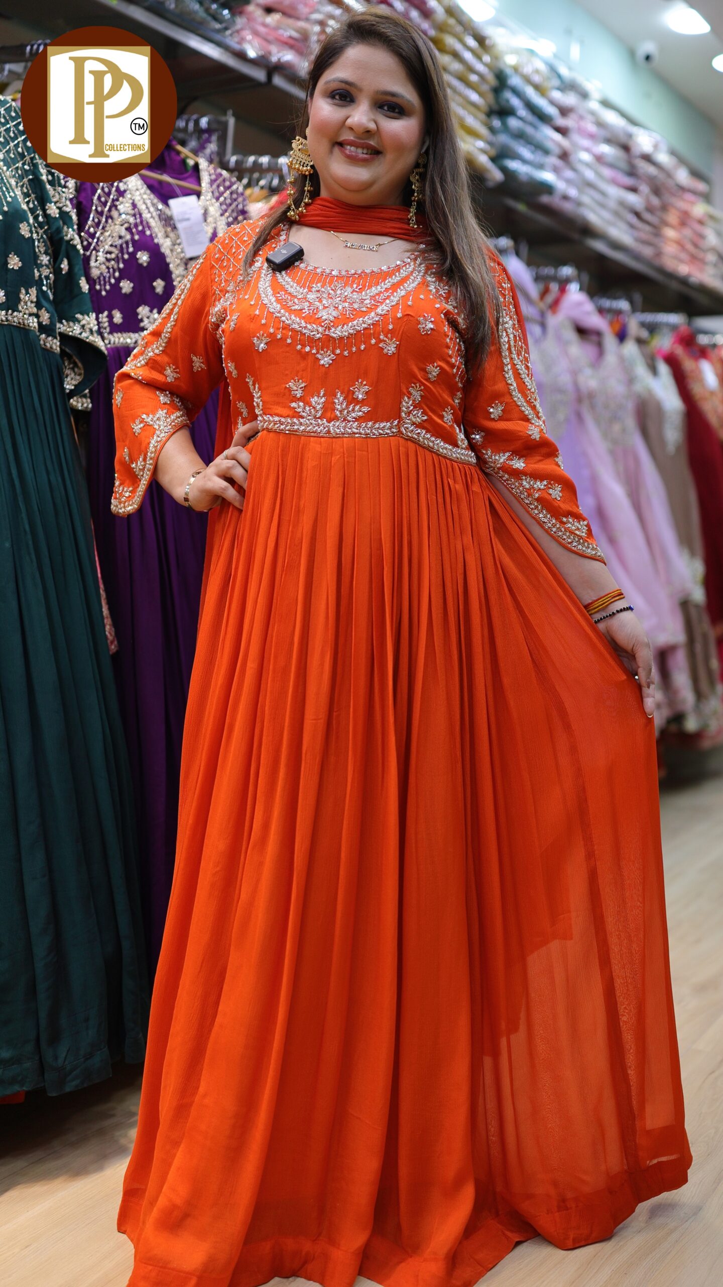 Description : 2 pcs Gown Fabric Type : Chinnon Style : Gown Work Type : Heavy Hand Work With Matching Dupatta.