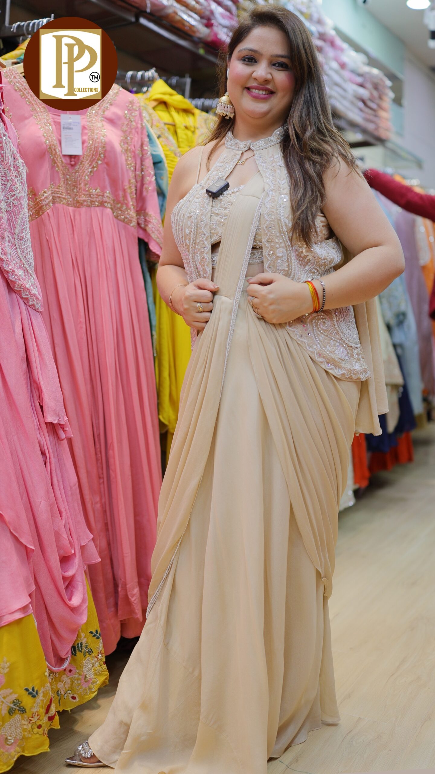Work Type : heavy handwork in blouse & detachable jacket with matching skirt