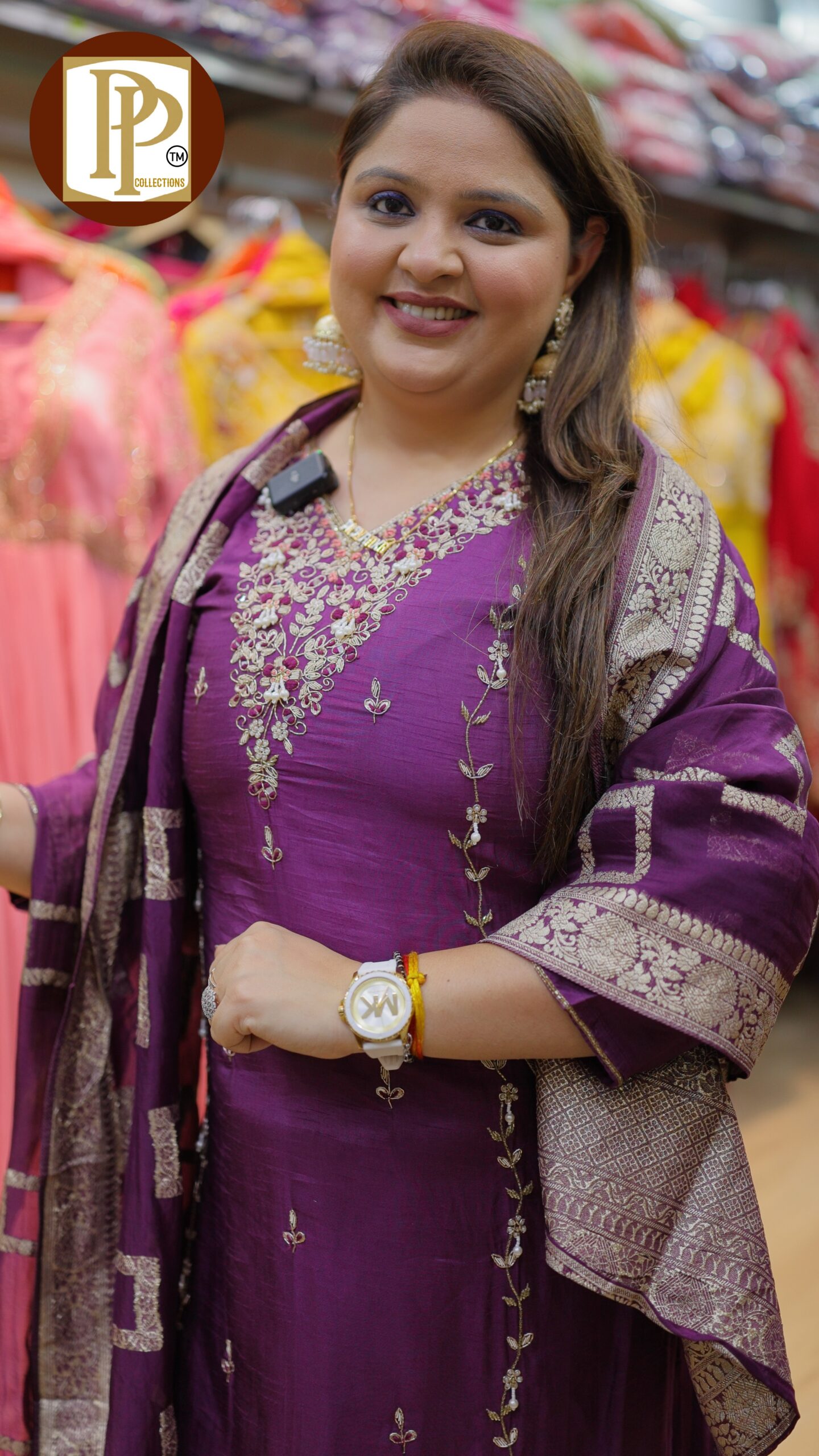 Work Type : full heavy handwork in short kurta with matching divider & matching Banarasi dupatta .