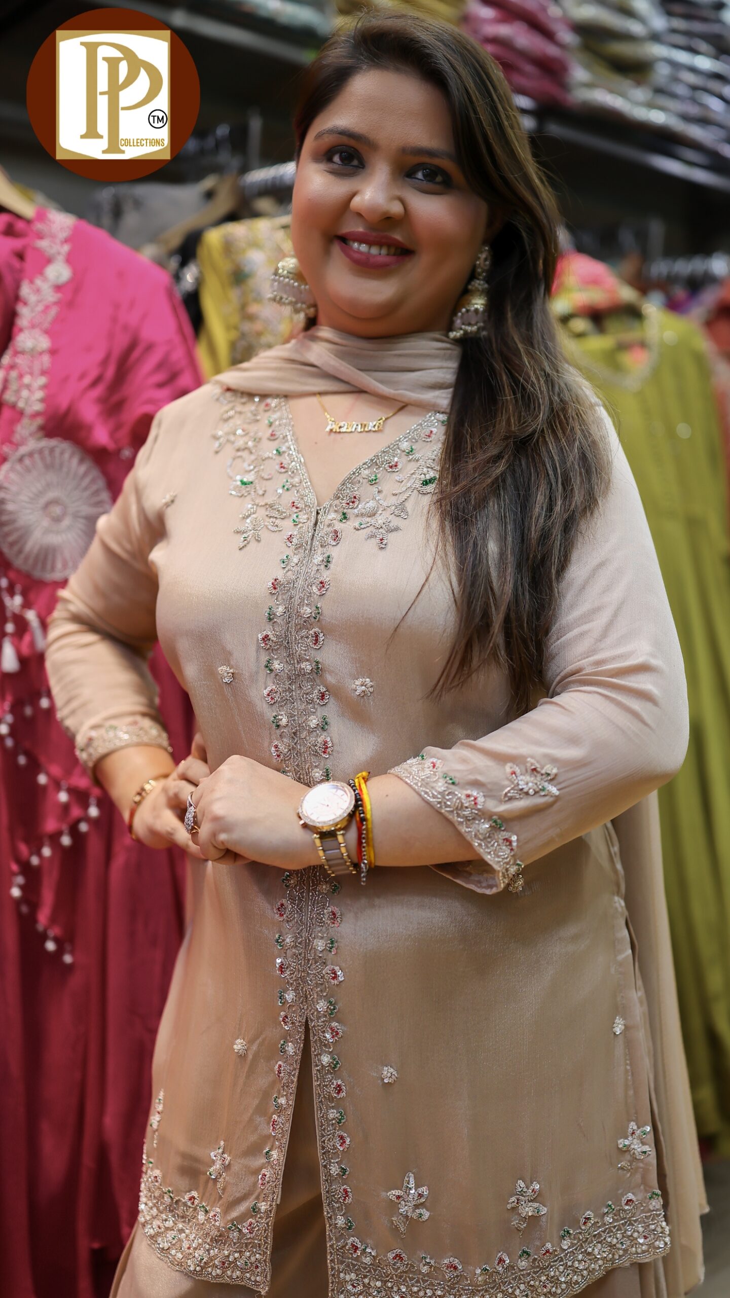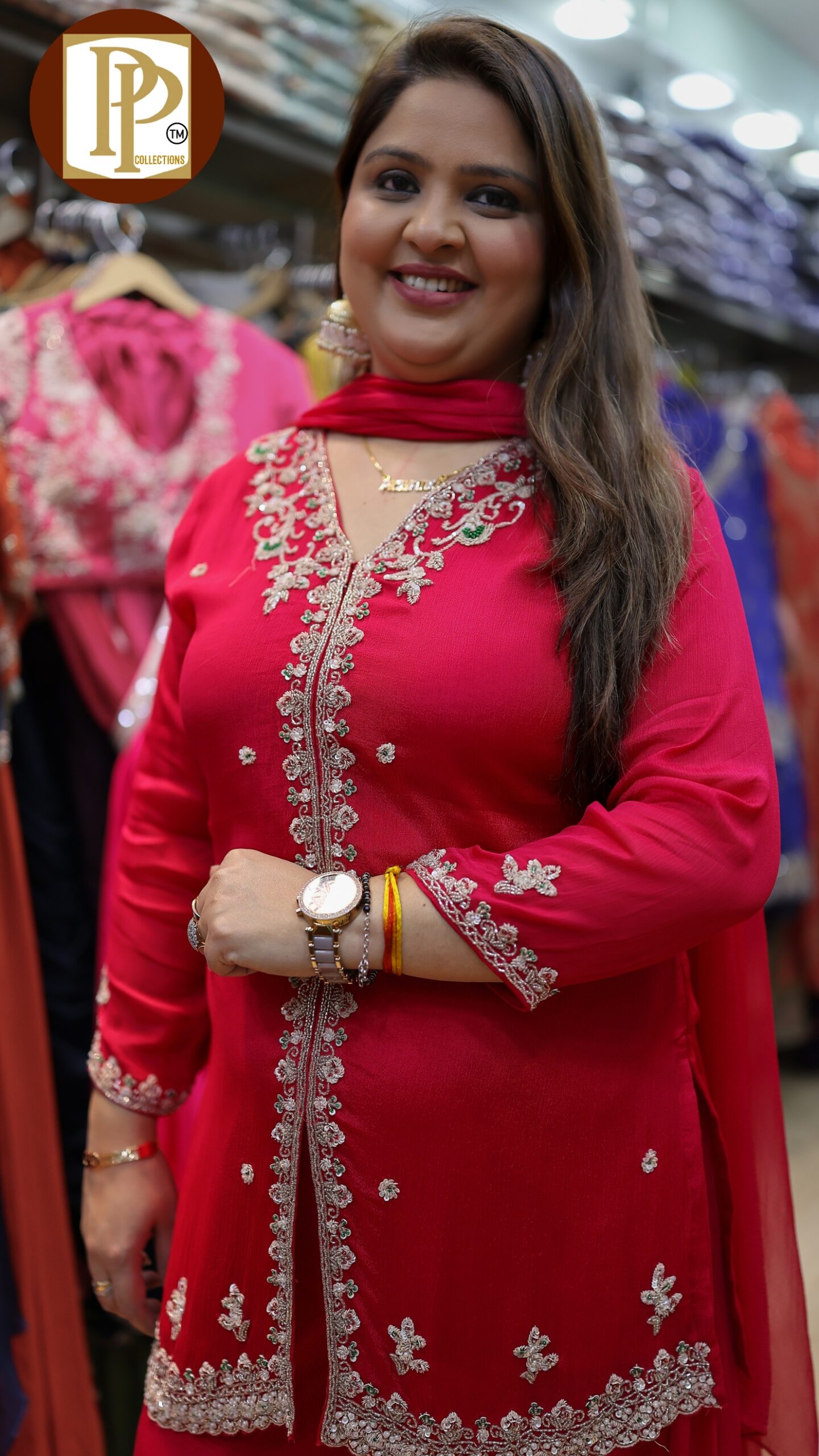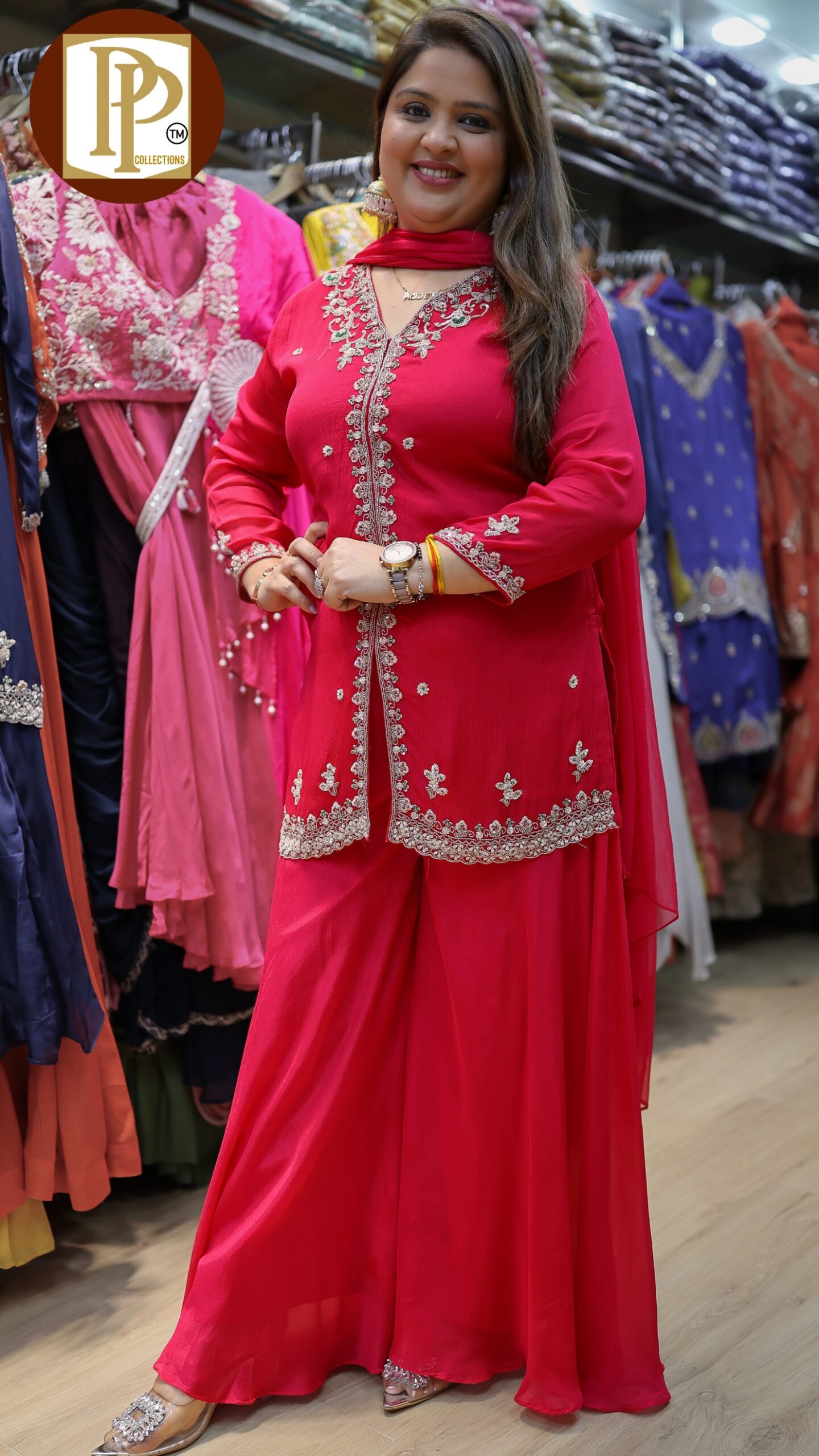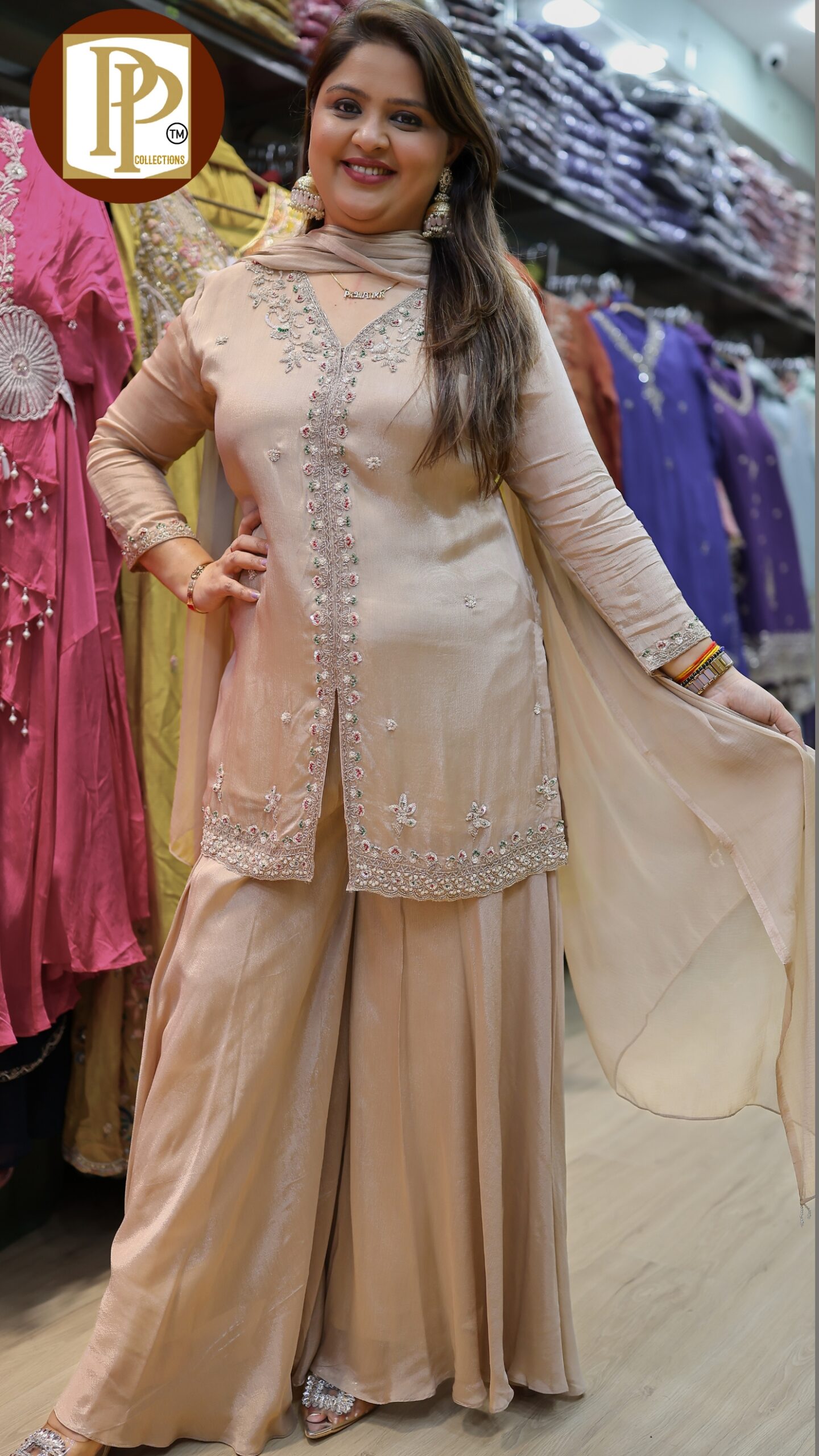 Work Type : heavy handwork in short kurta with matching divider & dupatta .