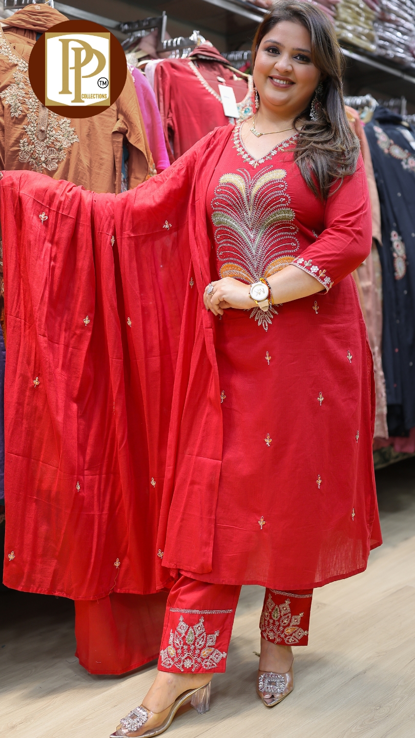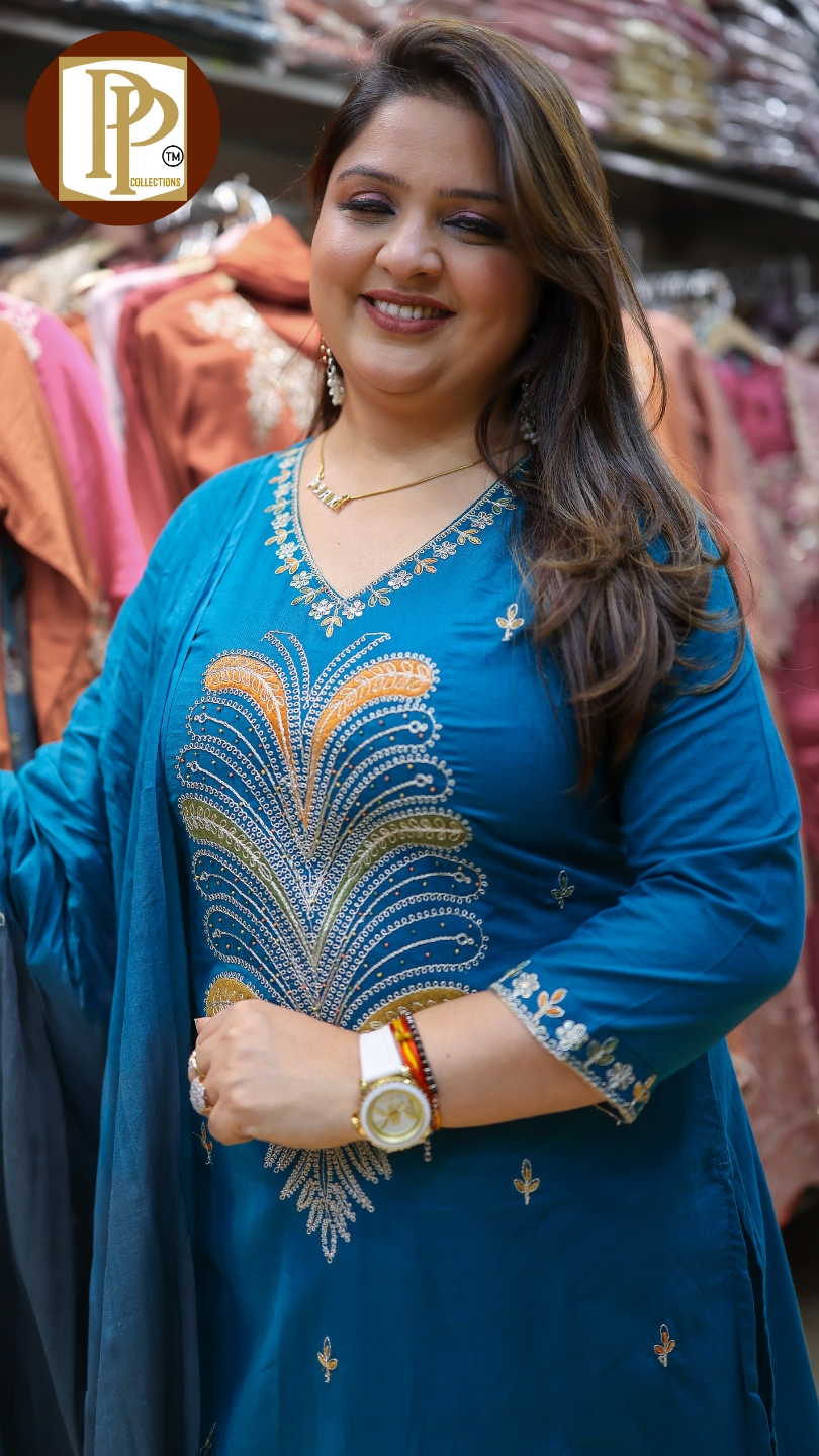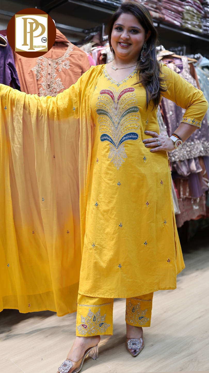 Work Type : full heavy threadwork in kurta with matching pant & dupatta .