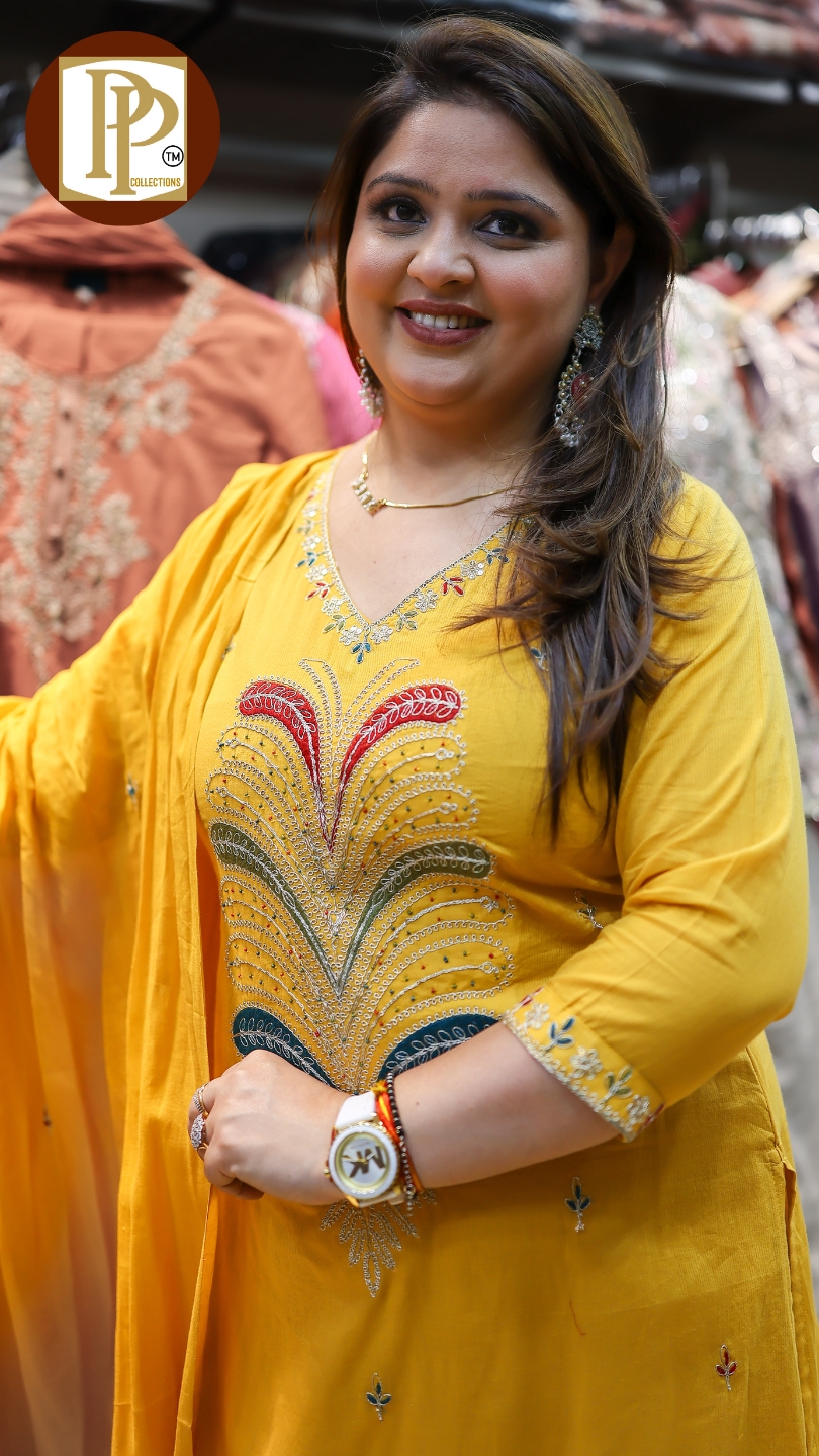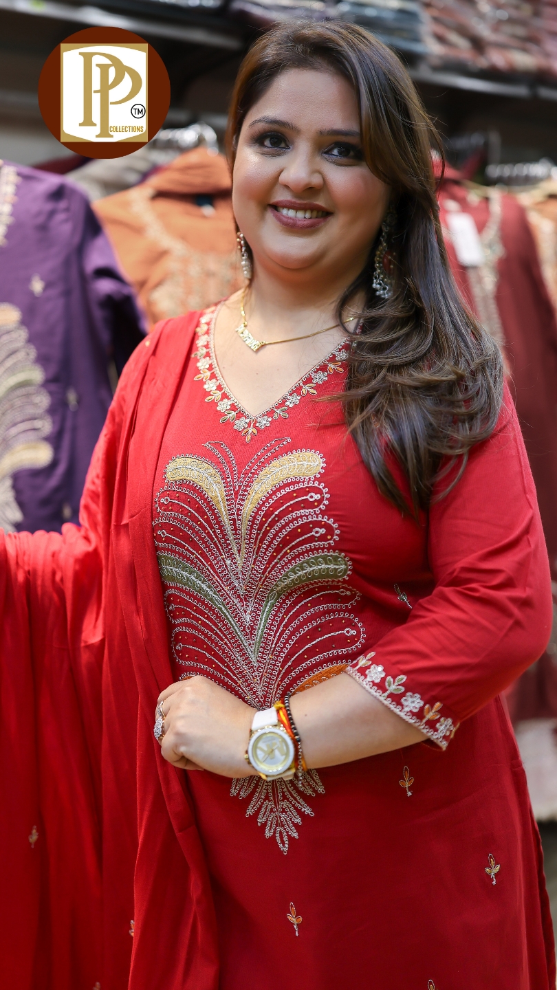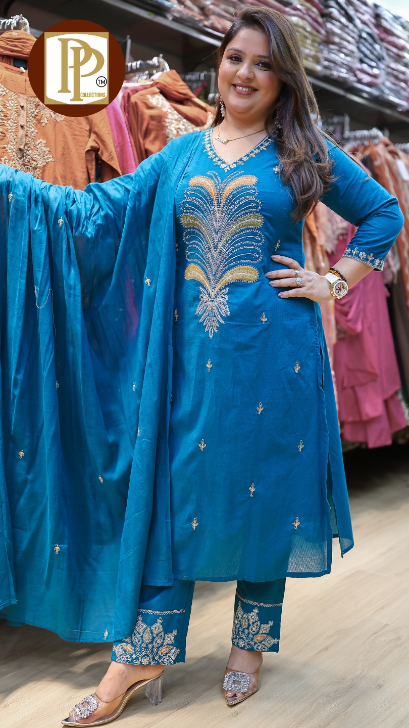 Work Type : full heavy threadwork in kurta with matching pant & dupatta .