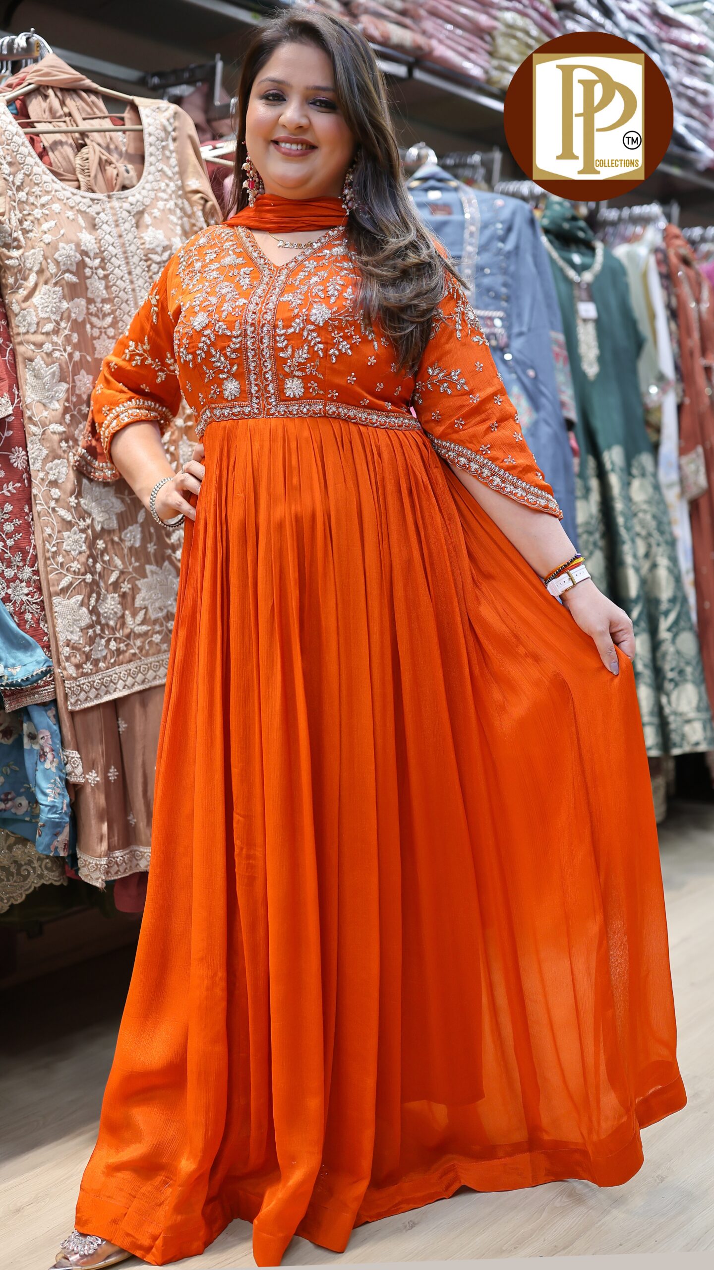 Description : 2pcs Gown set Fabric Type : chinnon Style : Gown with dupatta Work Type : Full heavy handwork stone work in gown with matching