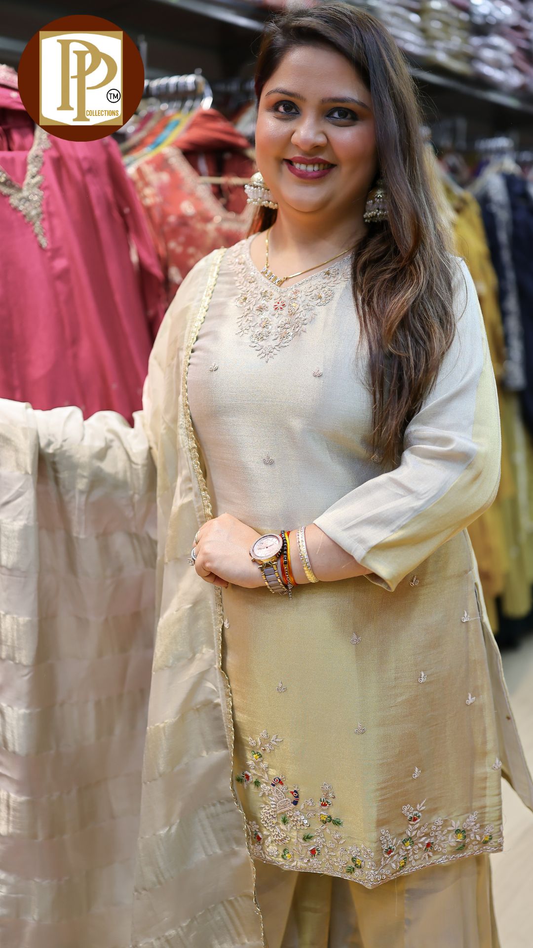 Work Type : heavy Threadwork & handwork in ombre short kurta with matching panelled divider & dupatta .S935