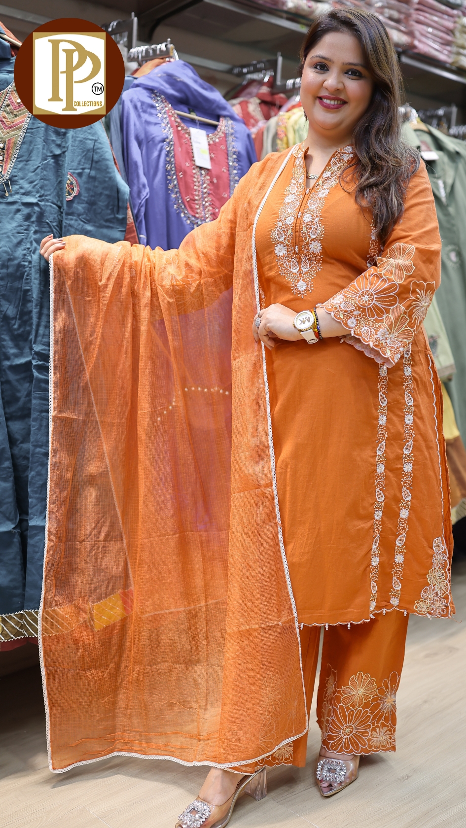 Work Type : full heavy threadwork handwork stone work in kurta with matching pants & dupatta .