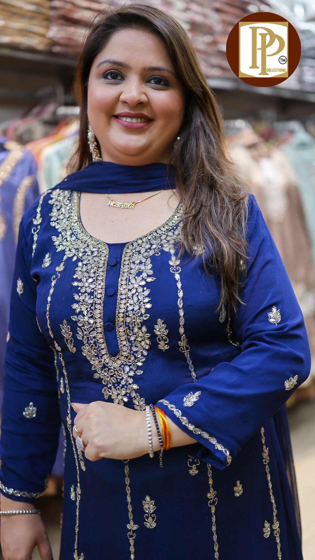 Work Type : full heavy handwork original mirror work stone work in Anarkali with matching pants & Dupatta.