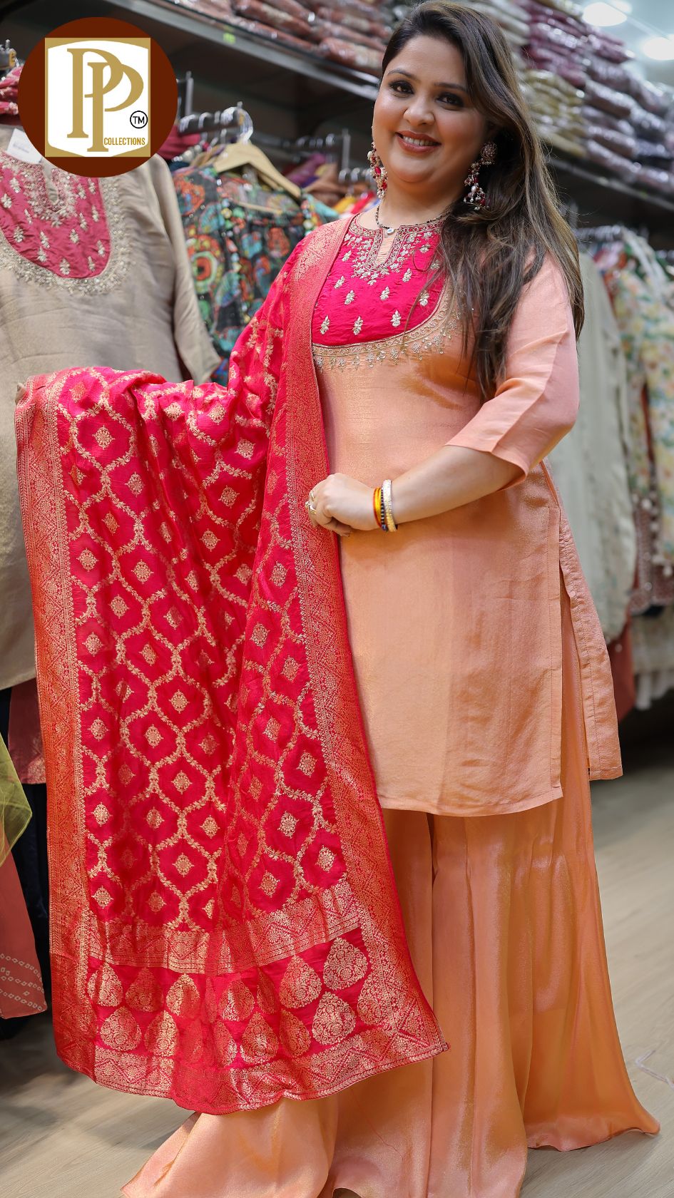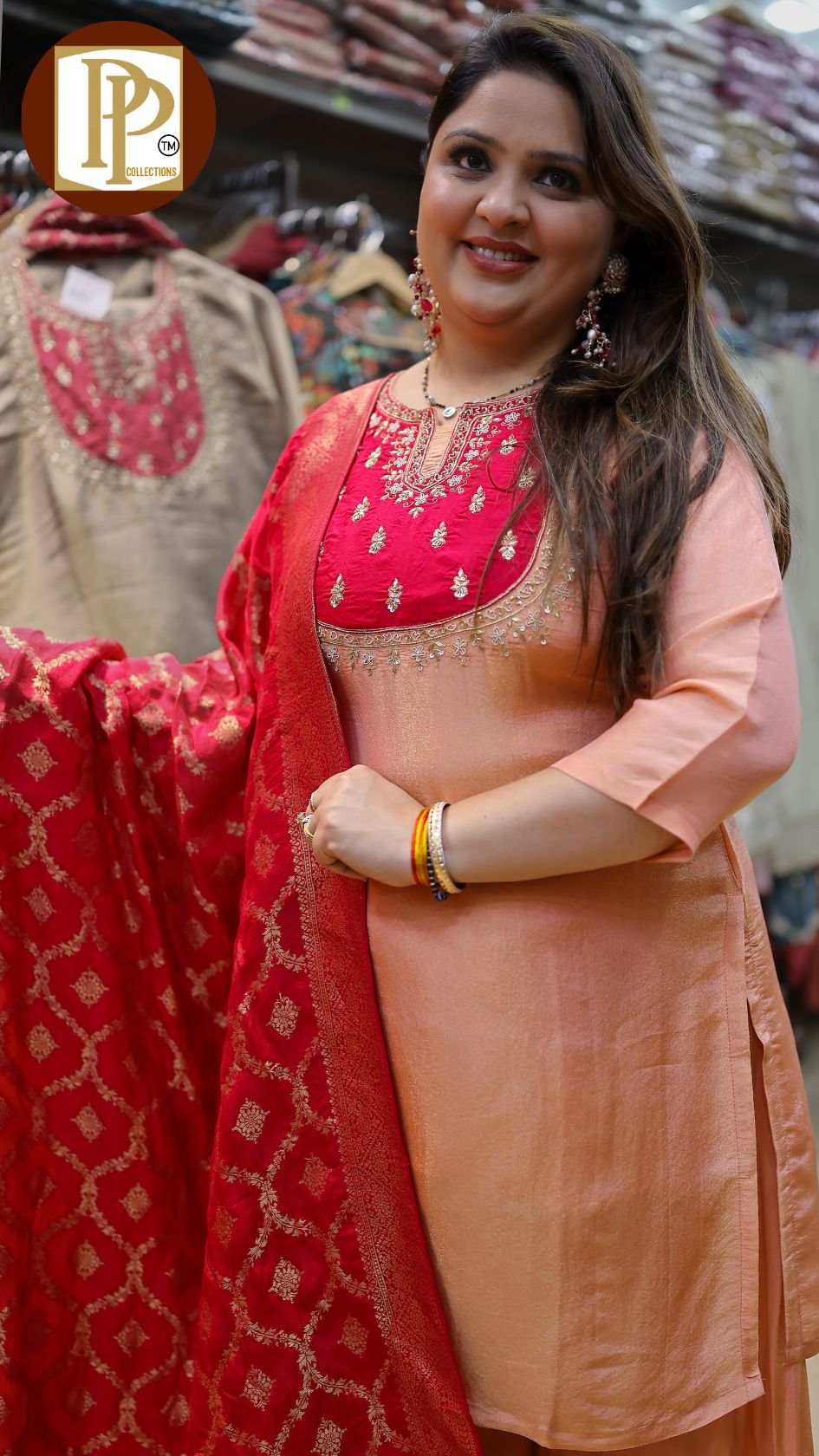 Work Type : heavy handwork Zari work in kurta with matching divider & dupatta .