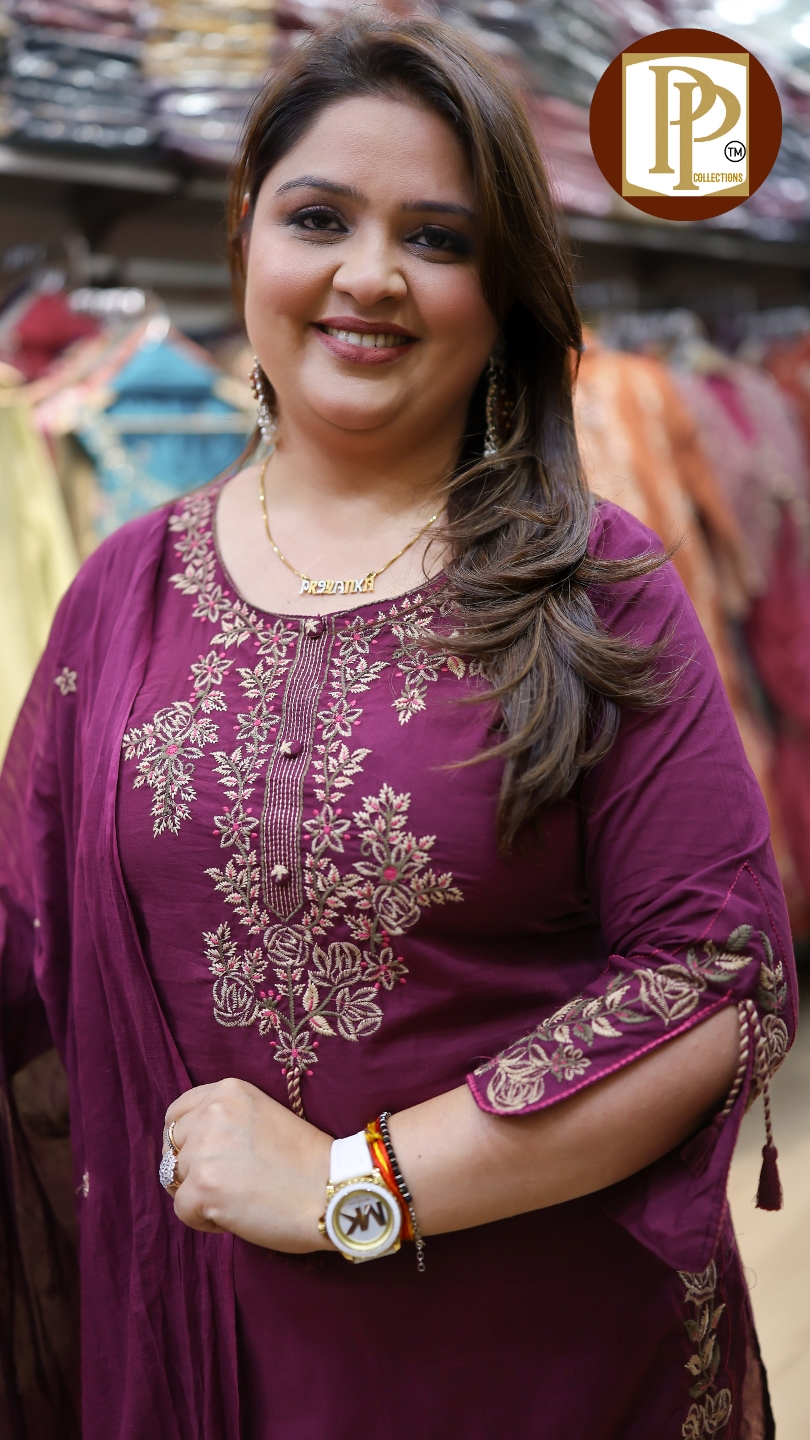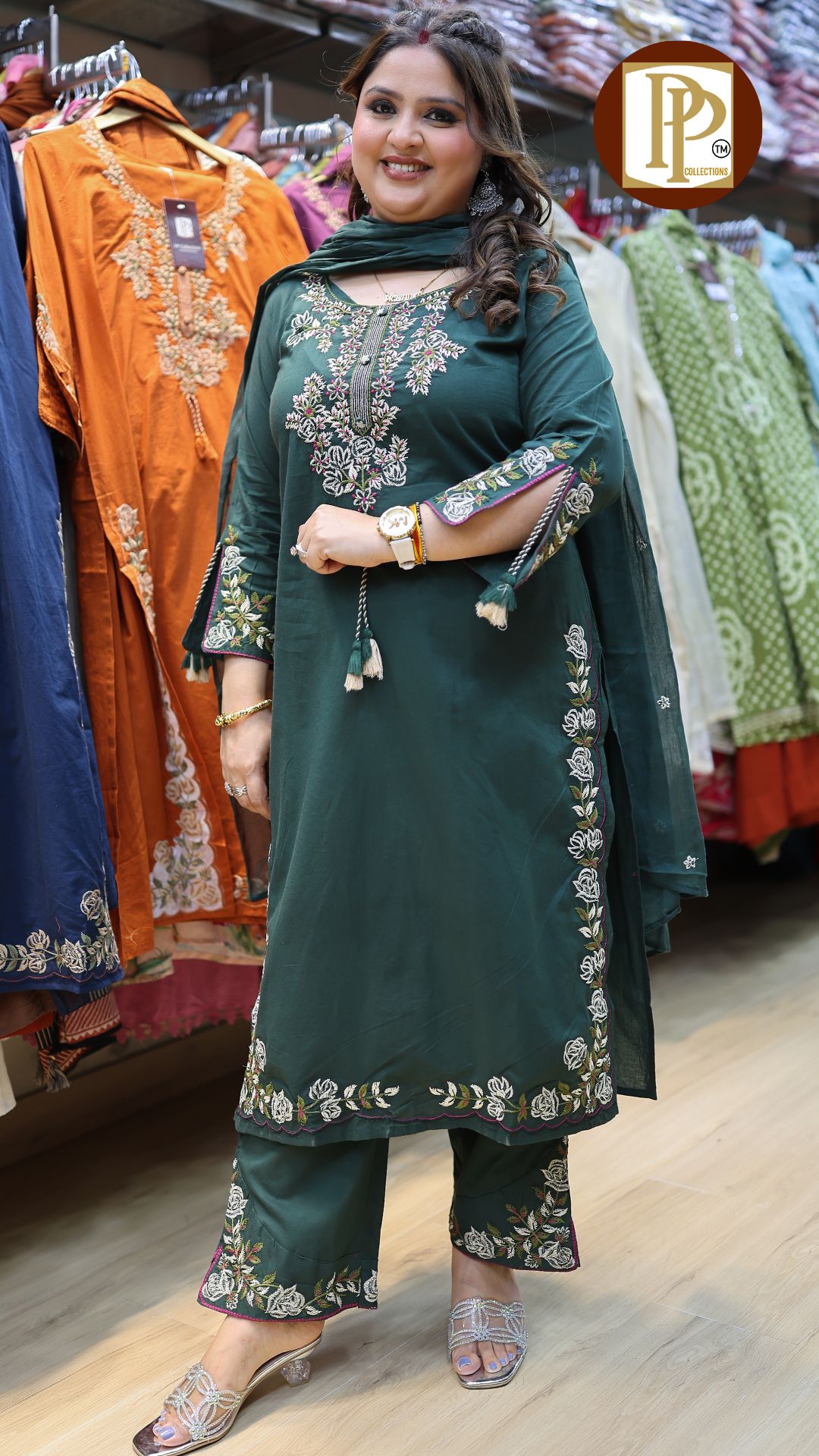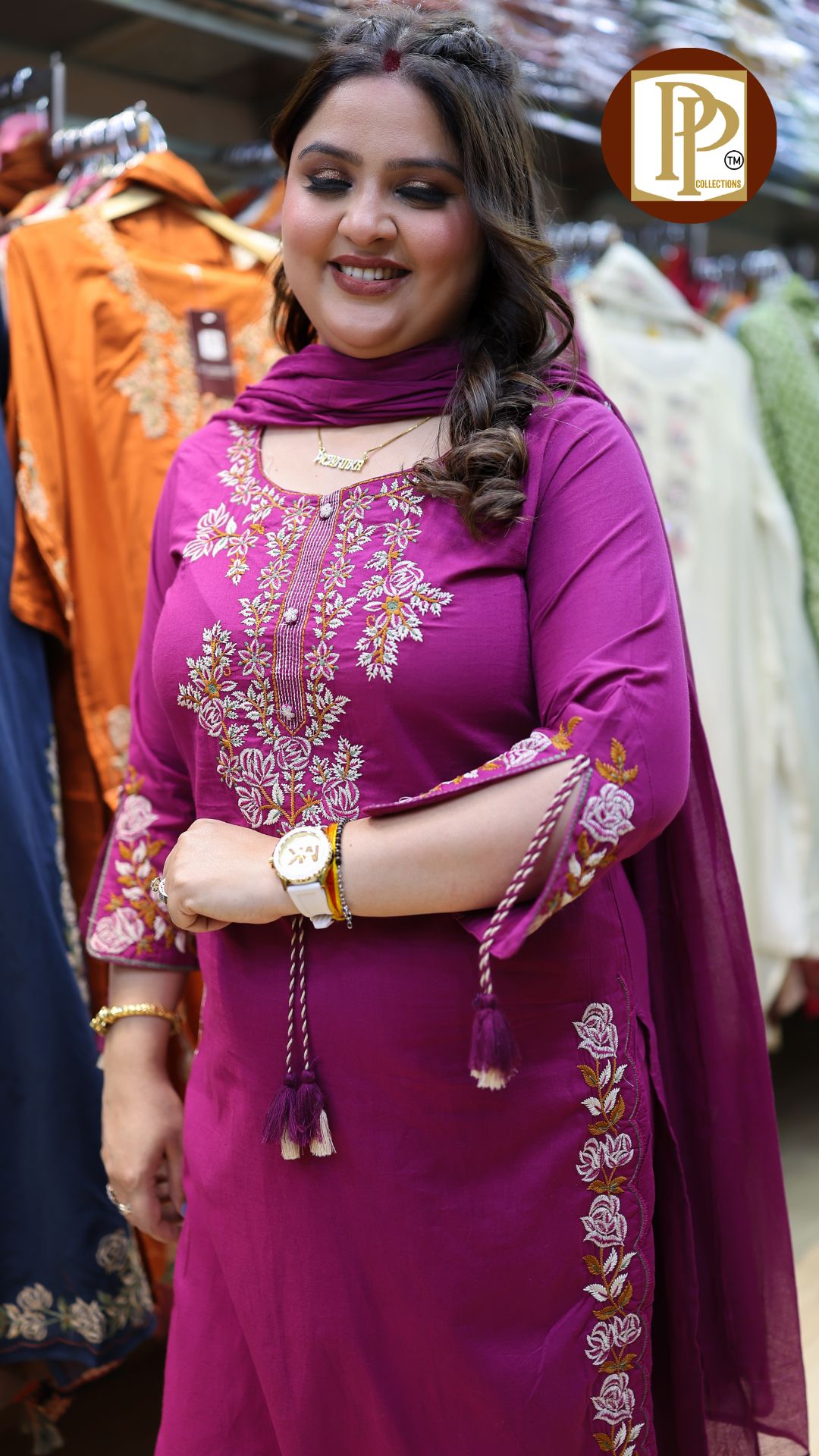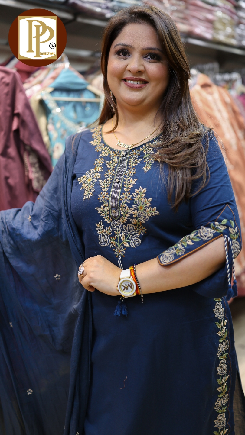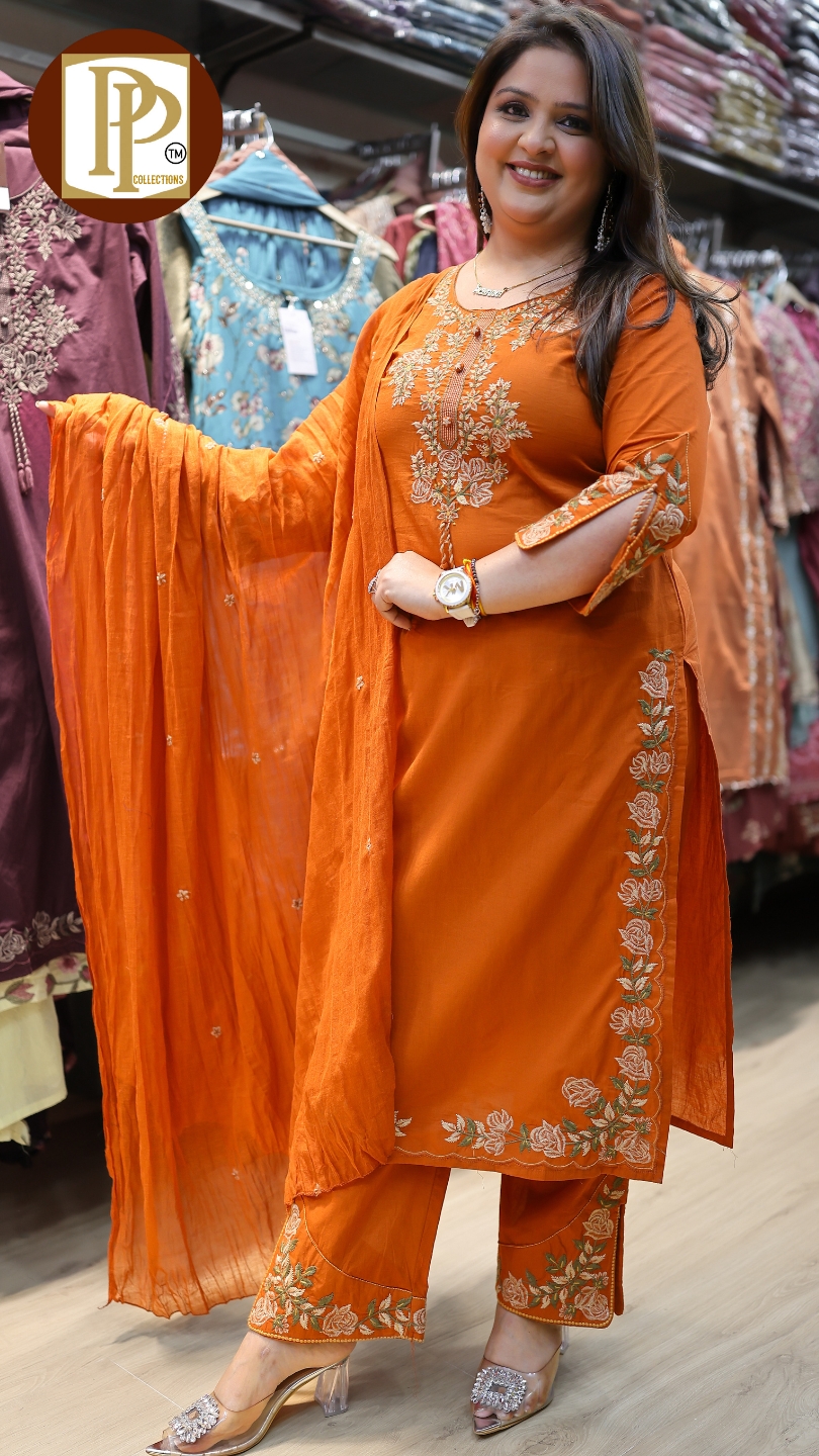 Work Type : threadwork in kurta with matching pants & dupatta .