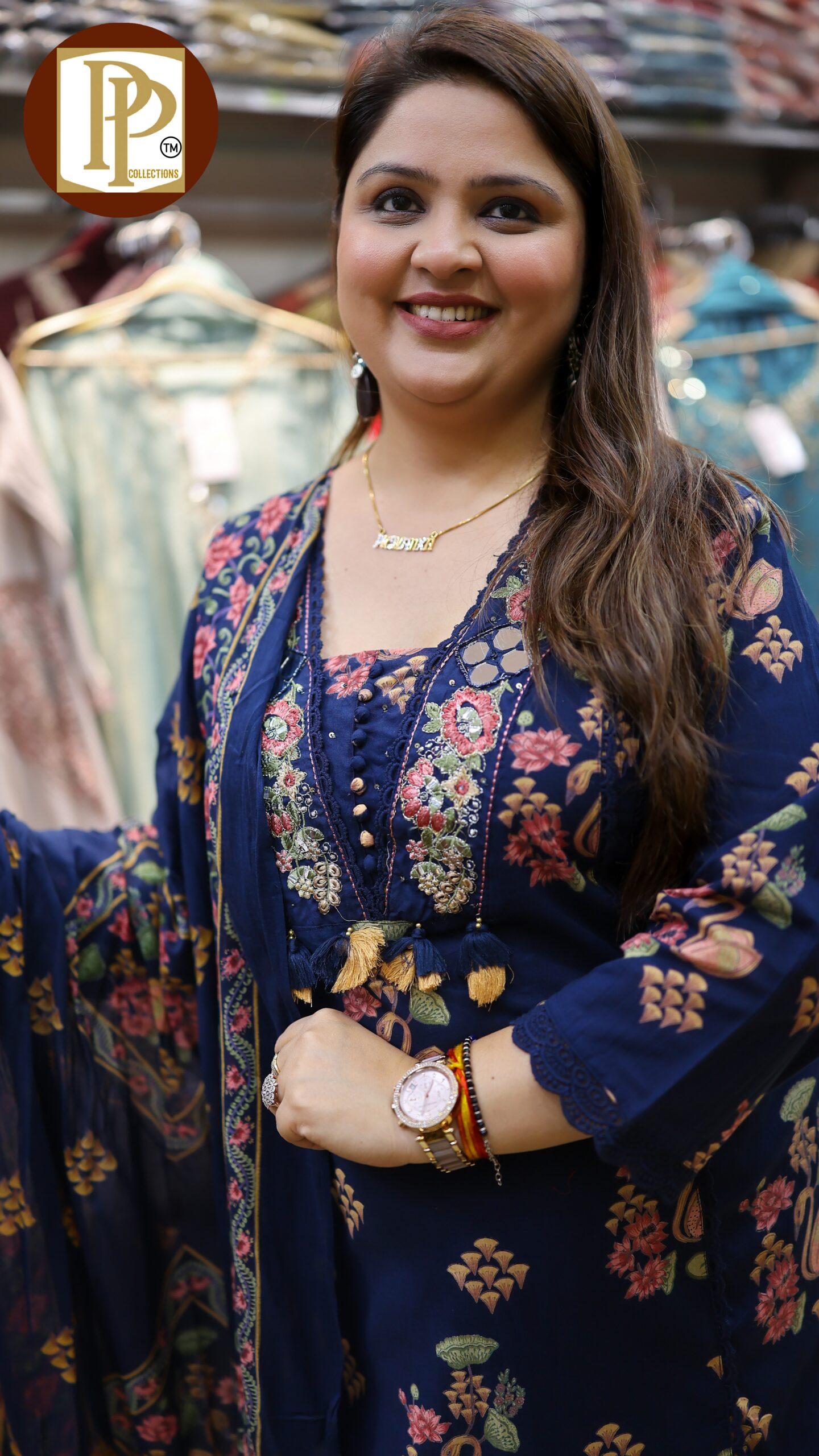 Work Type : full threadwork original mirror work all over printed kurta with matching pant & dupatta .