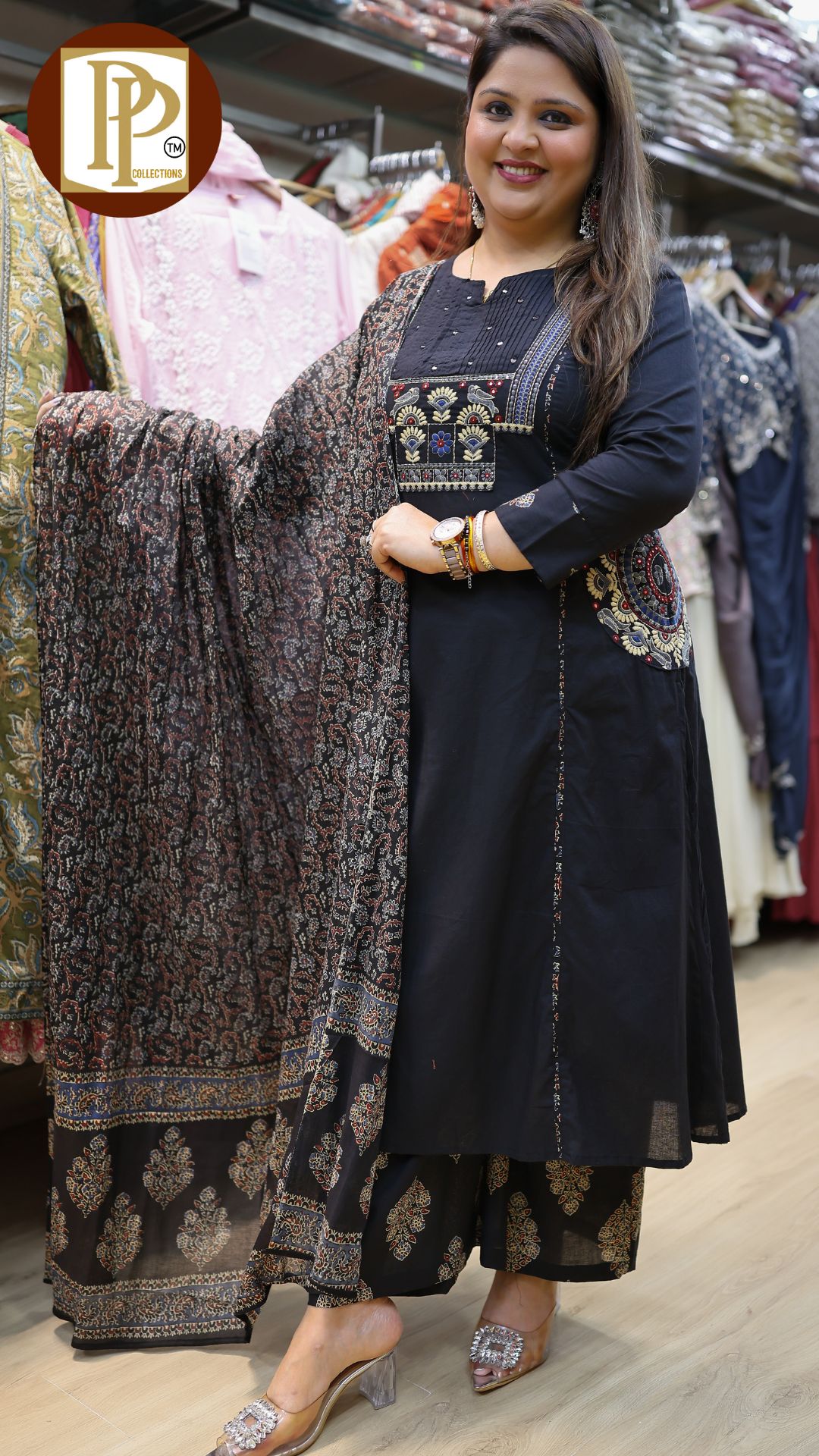 Work Type : full heavy threadwork in kurta & pocket in both side with matching pants & printed dupatta.