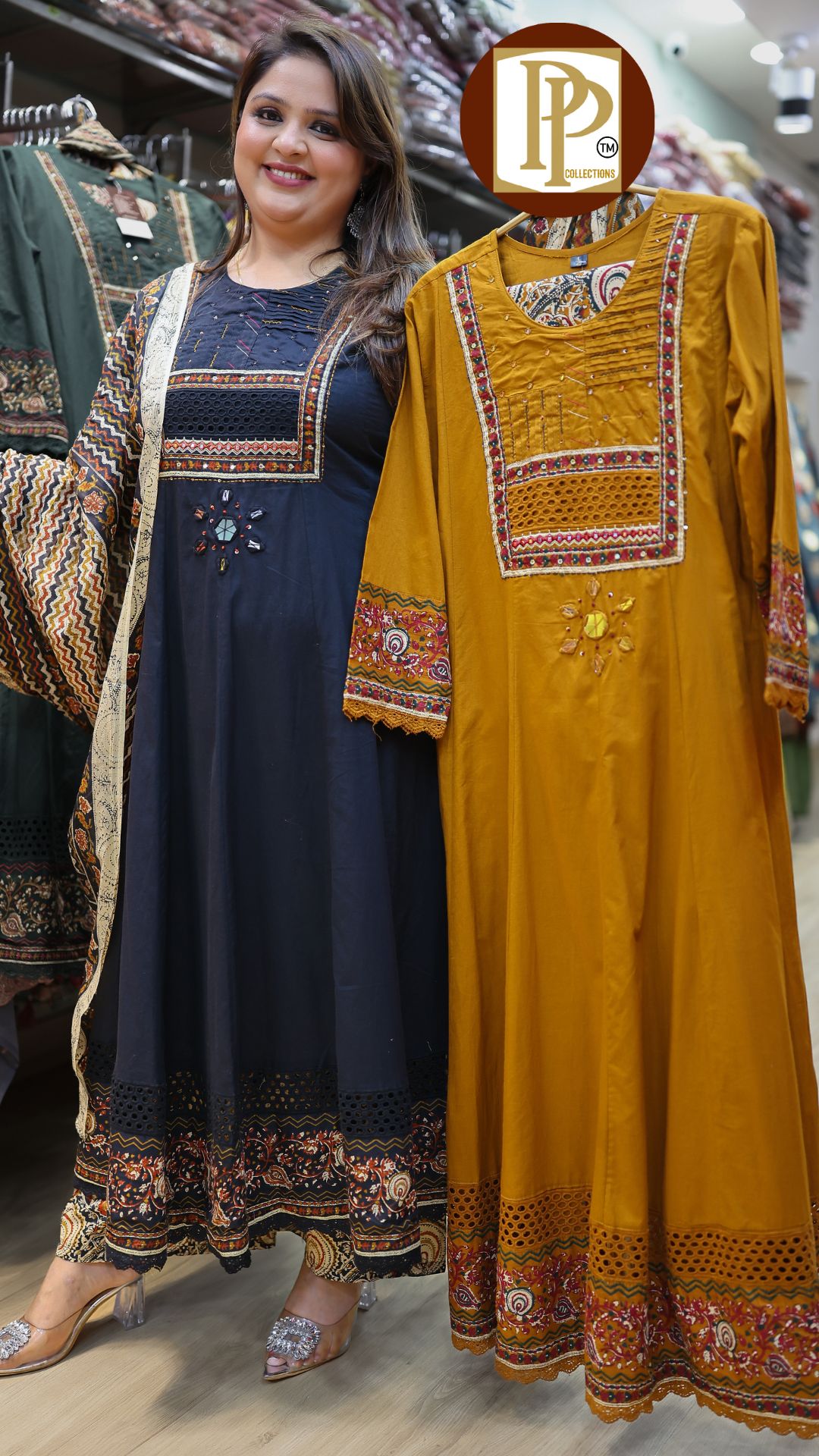 Work Type : full threadwork handwork original mirror work chikankari work in anarkali with matching pant & dupatta .