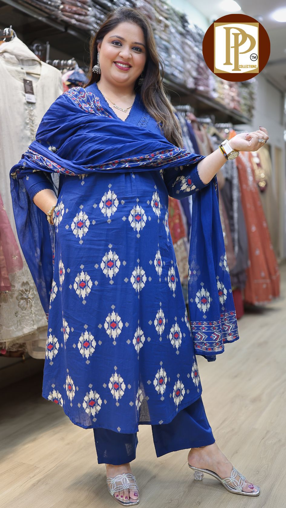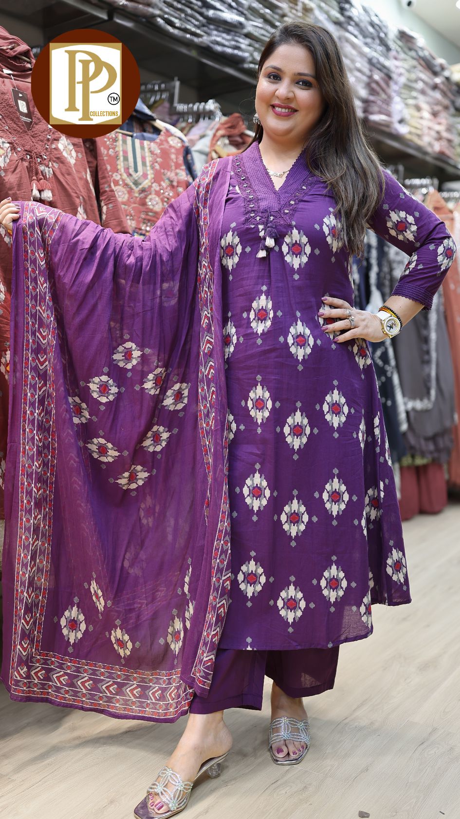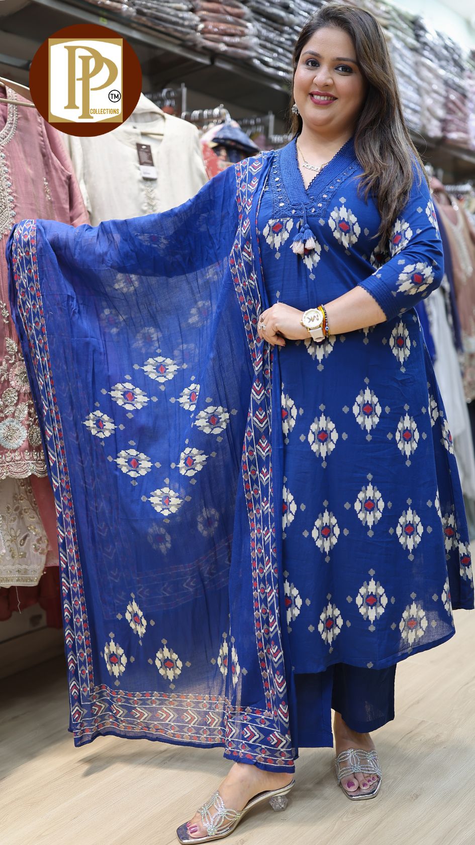 Work Type : all over print full threadwork original mirror work in kurta with matching pants & dupatta.