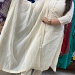 Attractive 3pc cotton pant set with hand & foil mirror work on all over the kurta with matching plain pant with plain cotton dupatta.