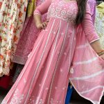Attractive 3pc anarkali pant set with thread & laces work on all over the kurta with matching pants & print pattern on all over the dupatta with matching laces borders on pants & dupatta.