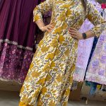 Out of StockAttractive cotton 2pc coord set with block printed pattern on all over the A-line top with matching cotton plain pants.