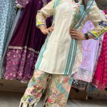 Out of StockAttractive muslin 2pc coord set with digital print pattern on all over the collared top with similar digital print pattern on all over the palazzo pants.