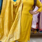 Work Type : V-Neck On Hand Work With Matching Banarasi Dupatta.