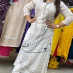 Attractive 2pc rayon coord set with hand work on V-neck with printed pattern on all over the kurta with matching palazzo style pants.