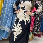 Attractive 2pc rayon coordset with digital printed coordset with hand work also on V-neck with matching printed pattern on pant.