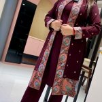 Description : 3piece Pant Set Fabric Type : Woolen Style : Plain Inner & Pant Co-ord Sets Work Type : Full Embroidery On Shrug.
