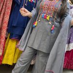 Out of StockAttractive cotton 3pc coord set with hand & thread work on upper part with matching thread work on pants with matching cotton dupatta.