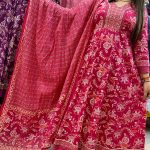 Attractive 3pc cotton anarkali pant set with hand work on upper part & laces work on borders of kurta & sleeves with matching print pattern on all over the kurta & pant with matching print on all over the dupatta.