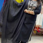 Attractive 3pc cotton pant set with thread & foil mirror work on upper part with matching plain cotton pant with matching plain dupatta.