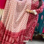 Attractive 3pc cotton pant set with block print pattern on all over the kurta & pant with printed contrast dupatta with laces work on kurta & pant borders.
