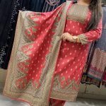 Work Type : All Over Printed Shrishki Work With Matching Shawl.