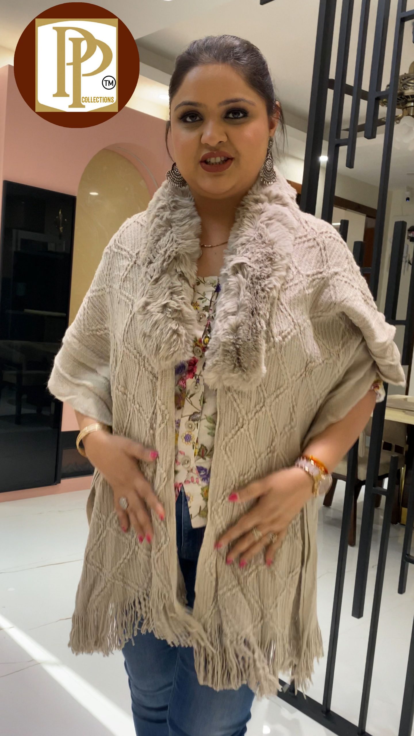 Description : 1piece Cape Fabric Type : Woollen Style : Cape Work Type : Knitted Furr.