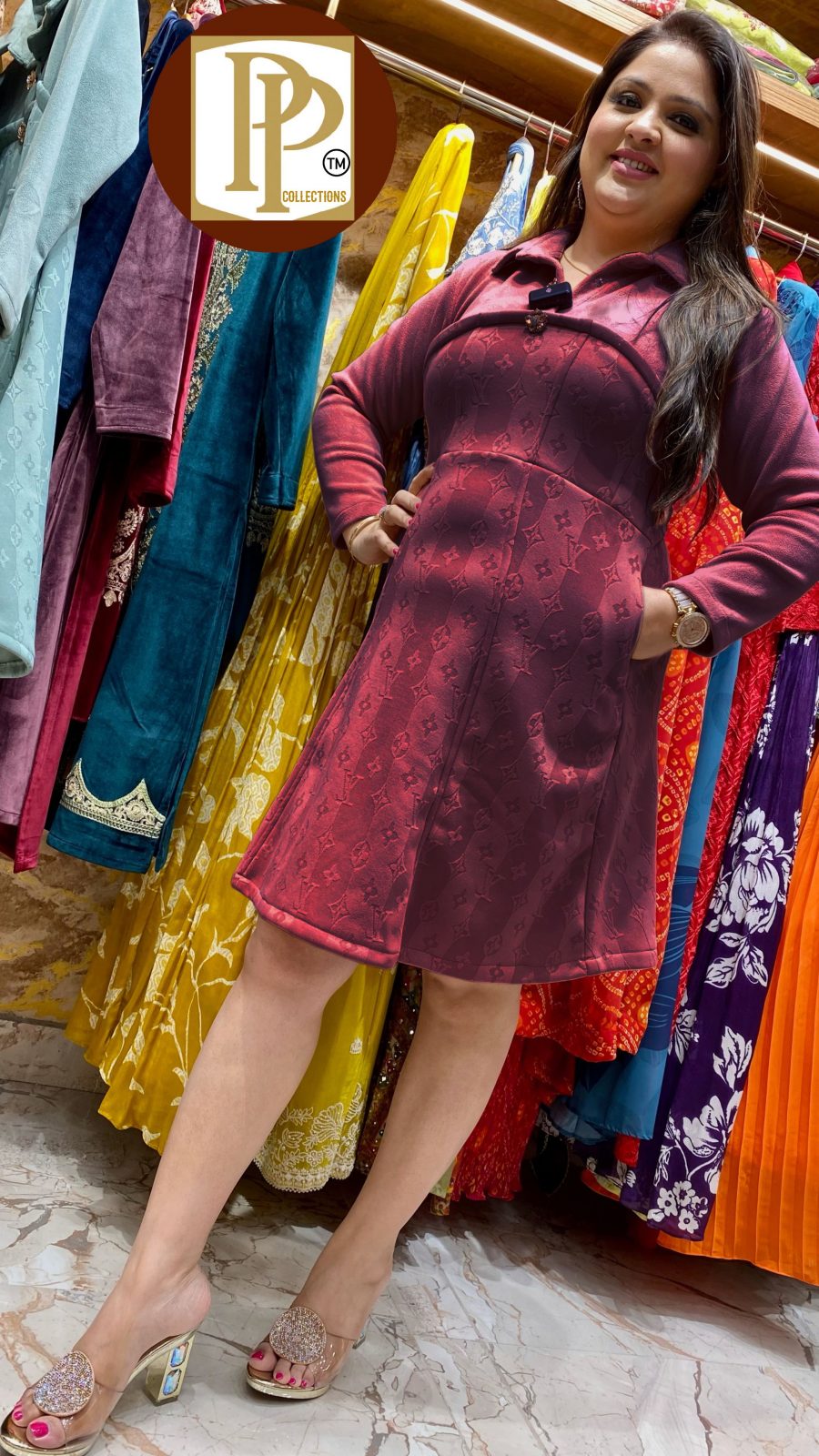 Description : 1piece Dress Fabric Type : Woolen Style : Dress Work Type : Color Button Work.