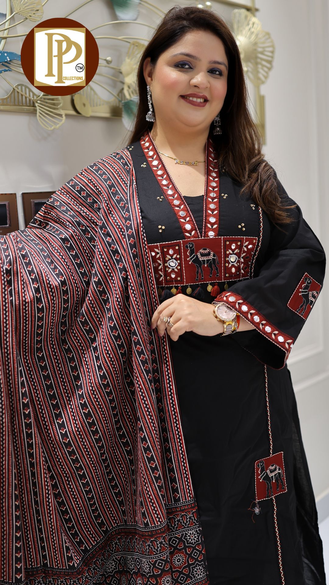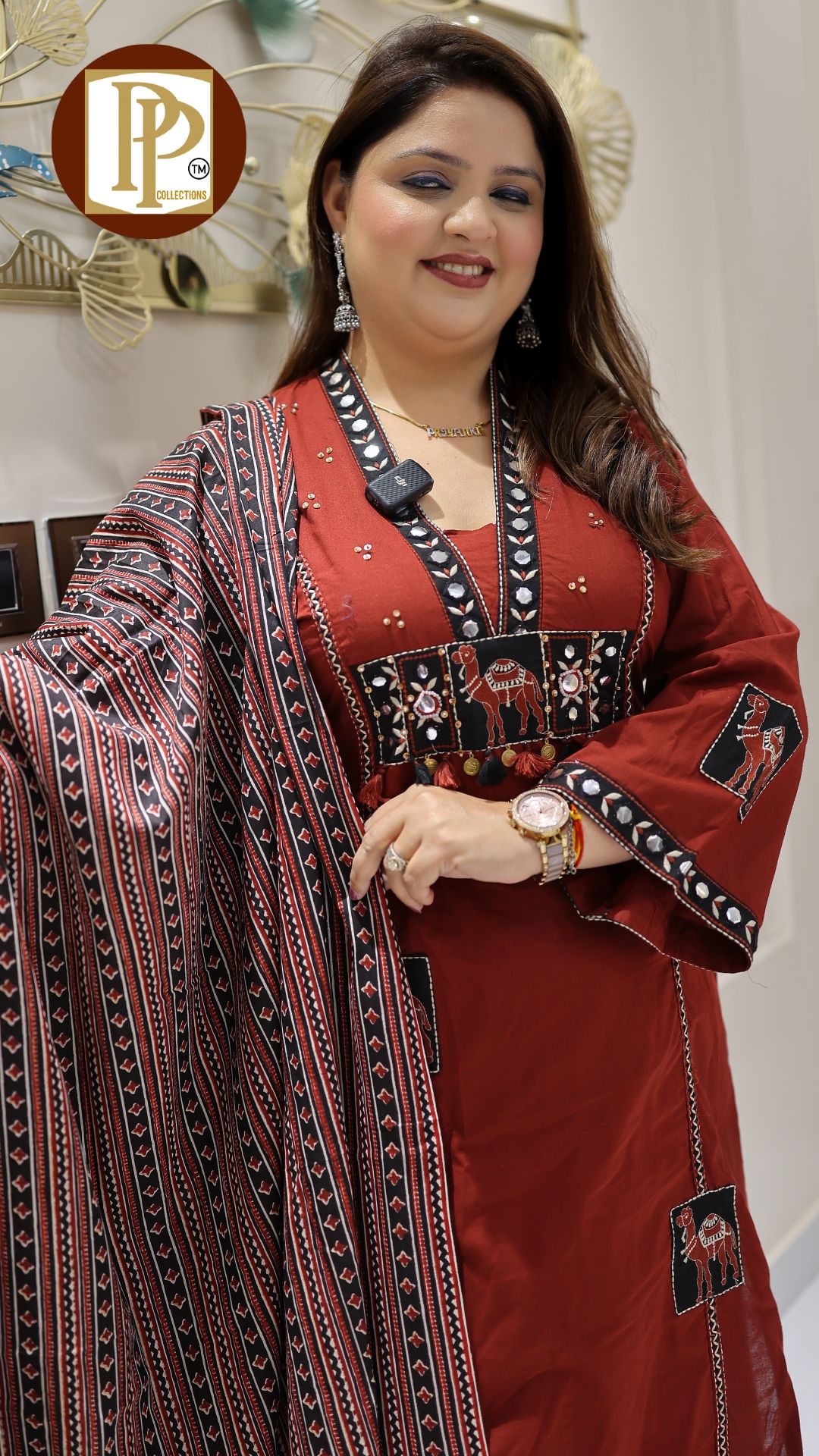 Work Type : Full heavy handwork threadwork Foile mirror work in kurta with matching dupatta & palazzo .