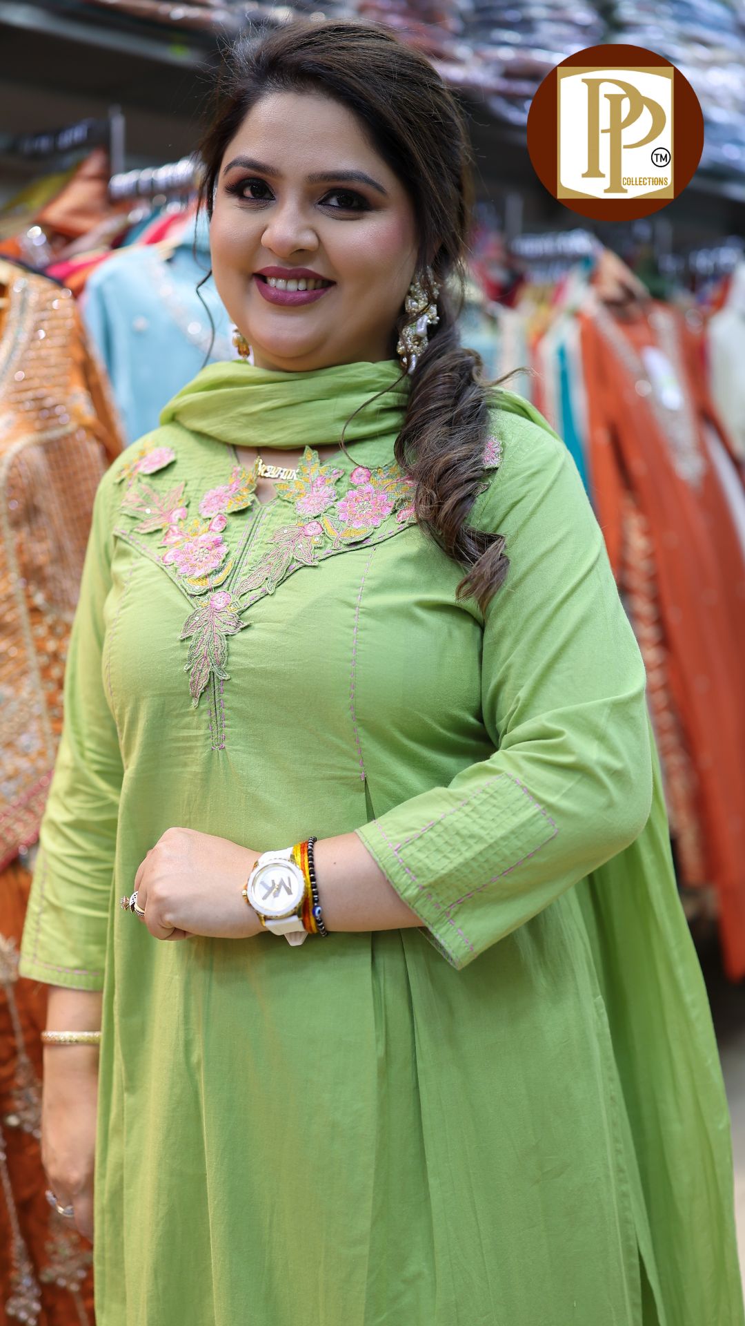 Work Type : Full heavy threadwork patch work in kurta with matching pants & dupatta .