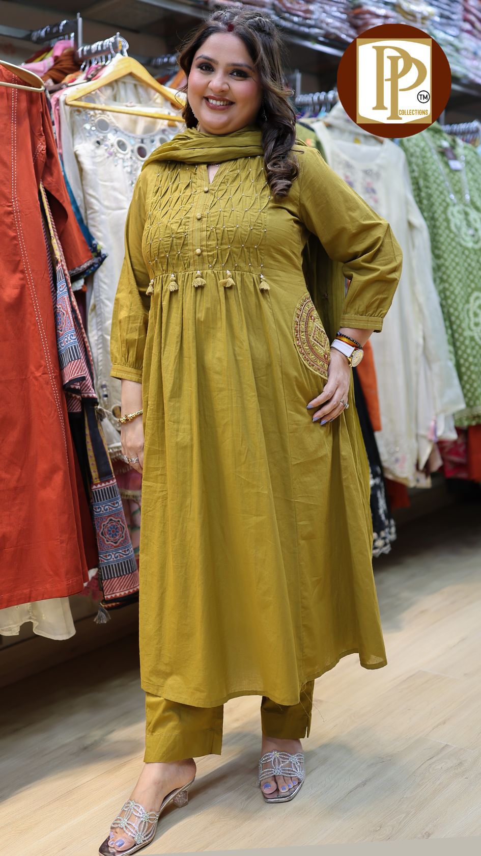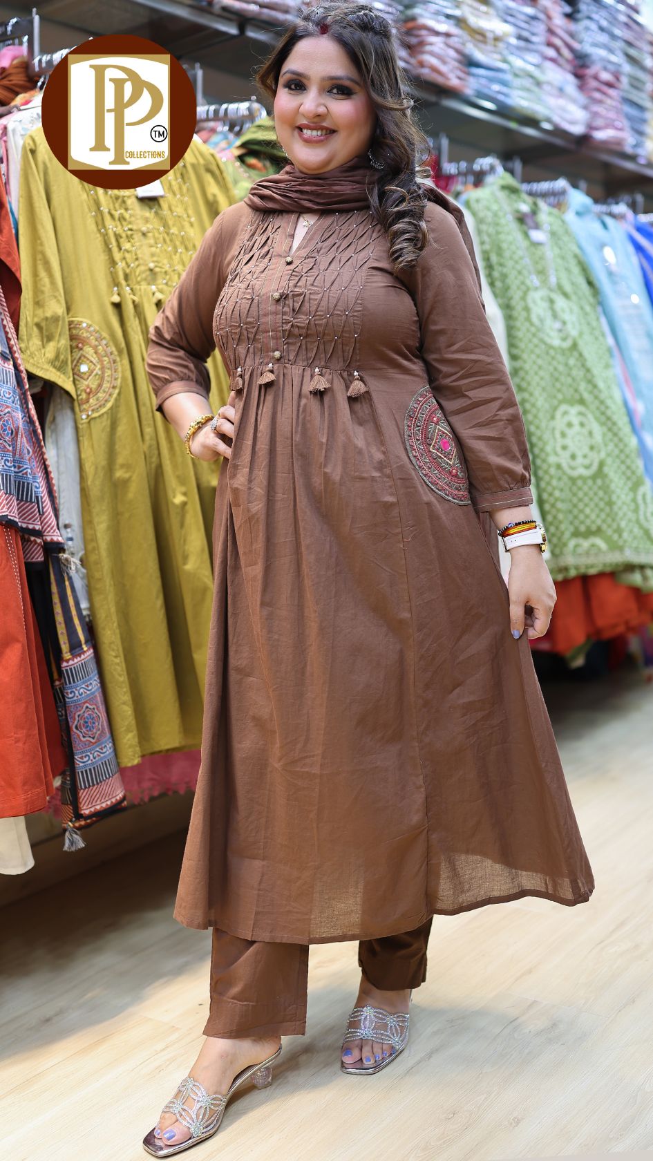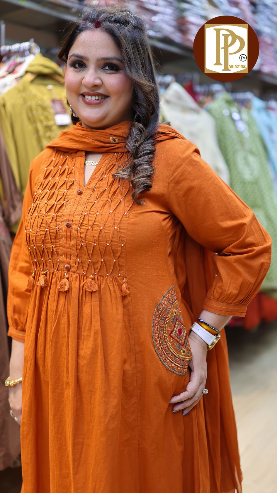 Work Type : full heavy threadwork tassel work  in anarkali with 2 side pocket & pants dupatta .