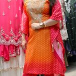 Work Type : Jari work Jaipuri print in kaftan with matching pants .