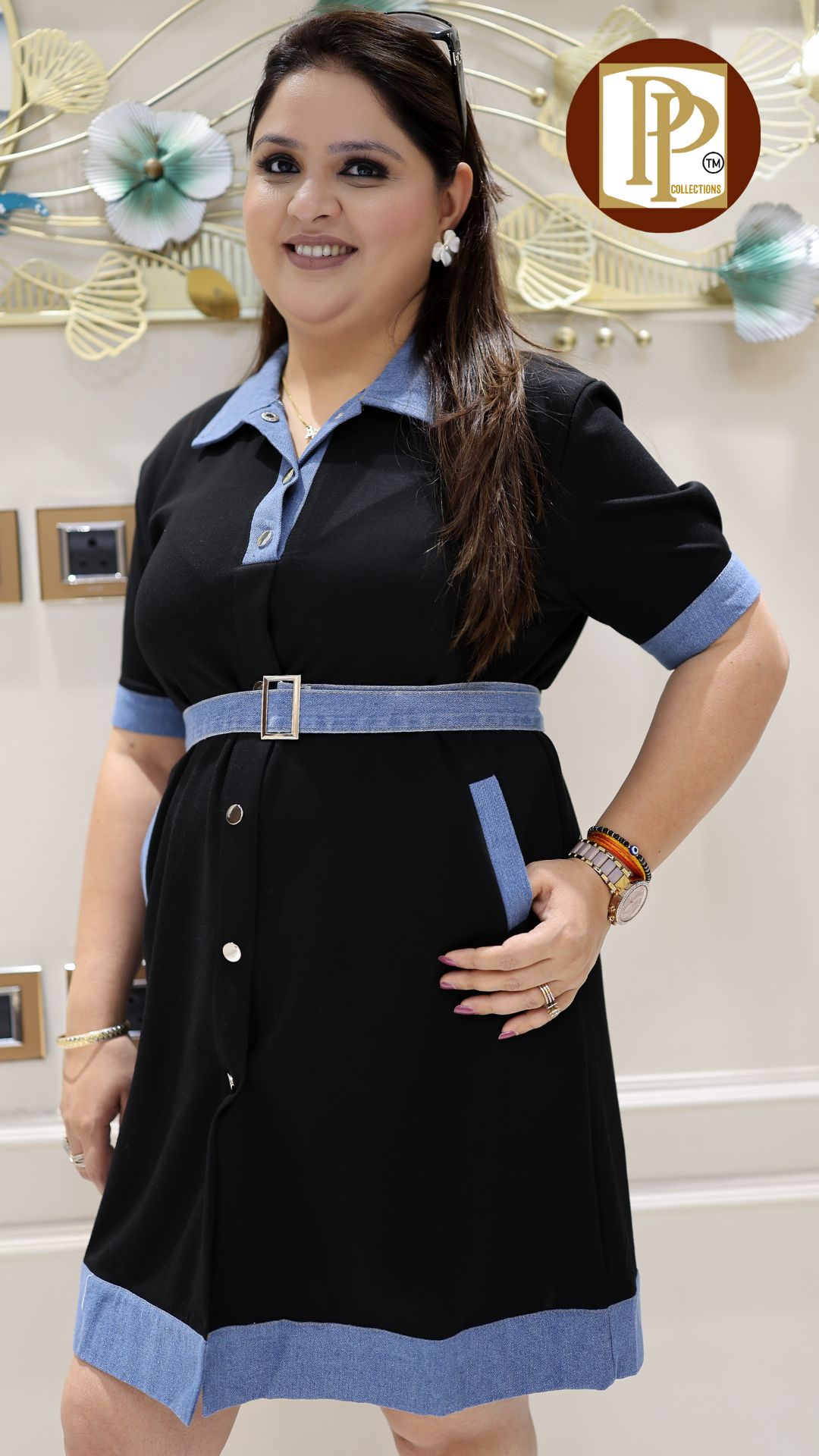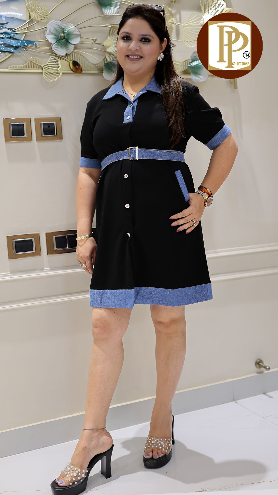 Work Type : Beautiful denim plain dress bottom work with matching belt .