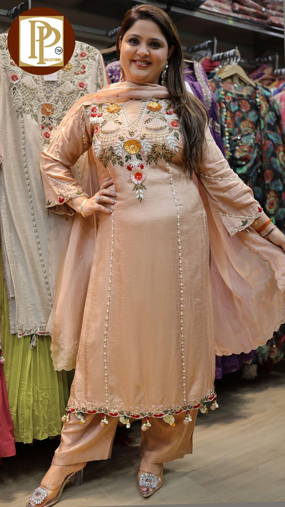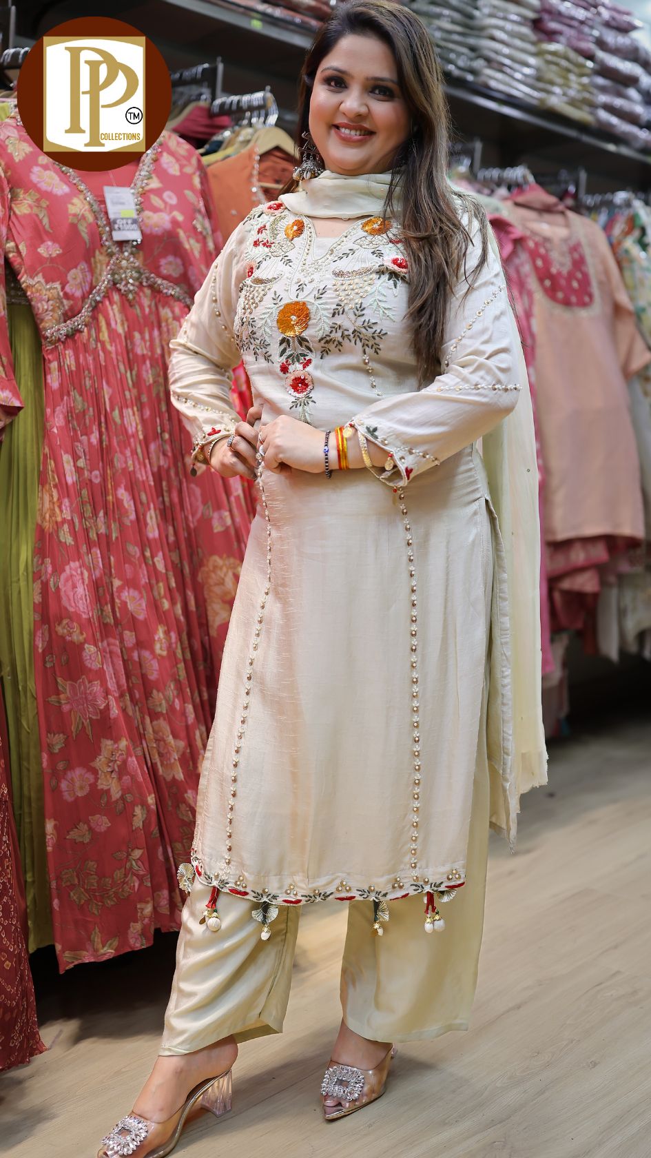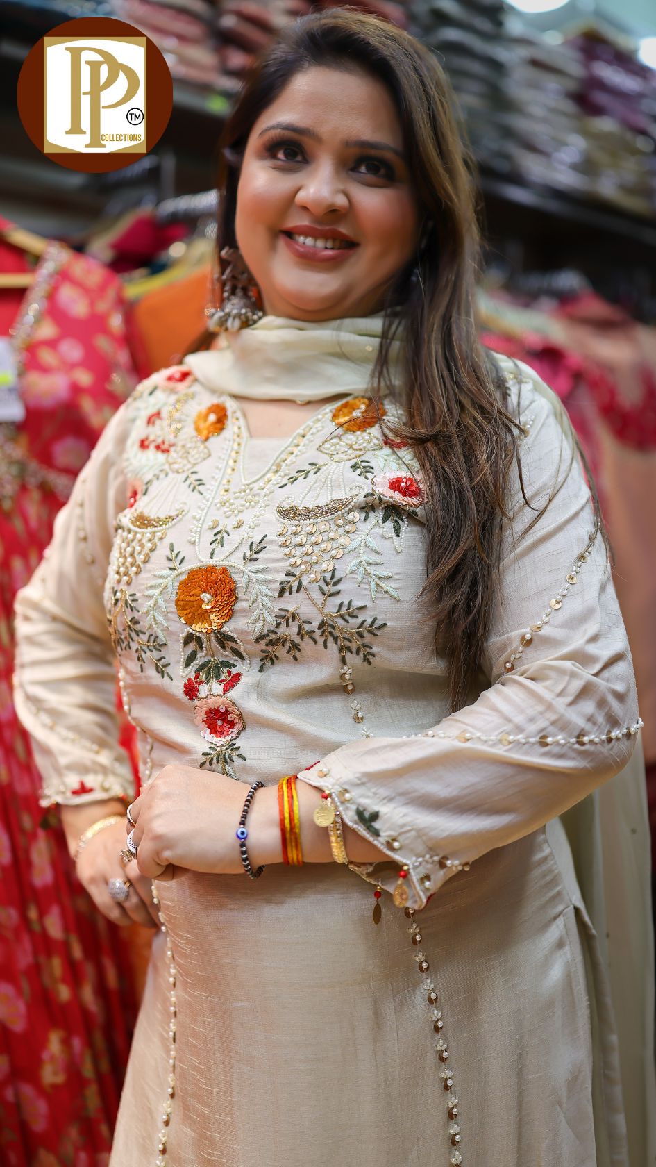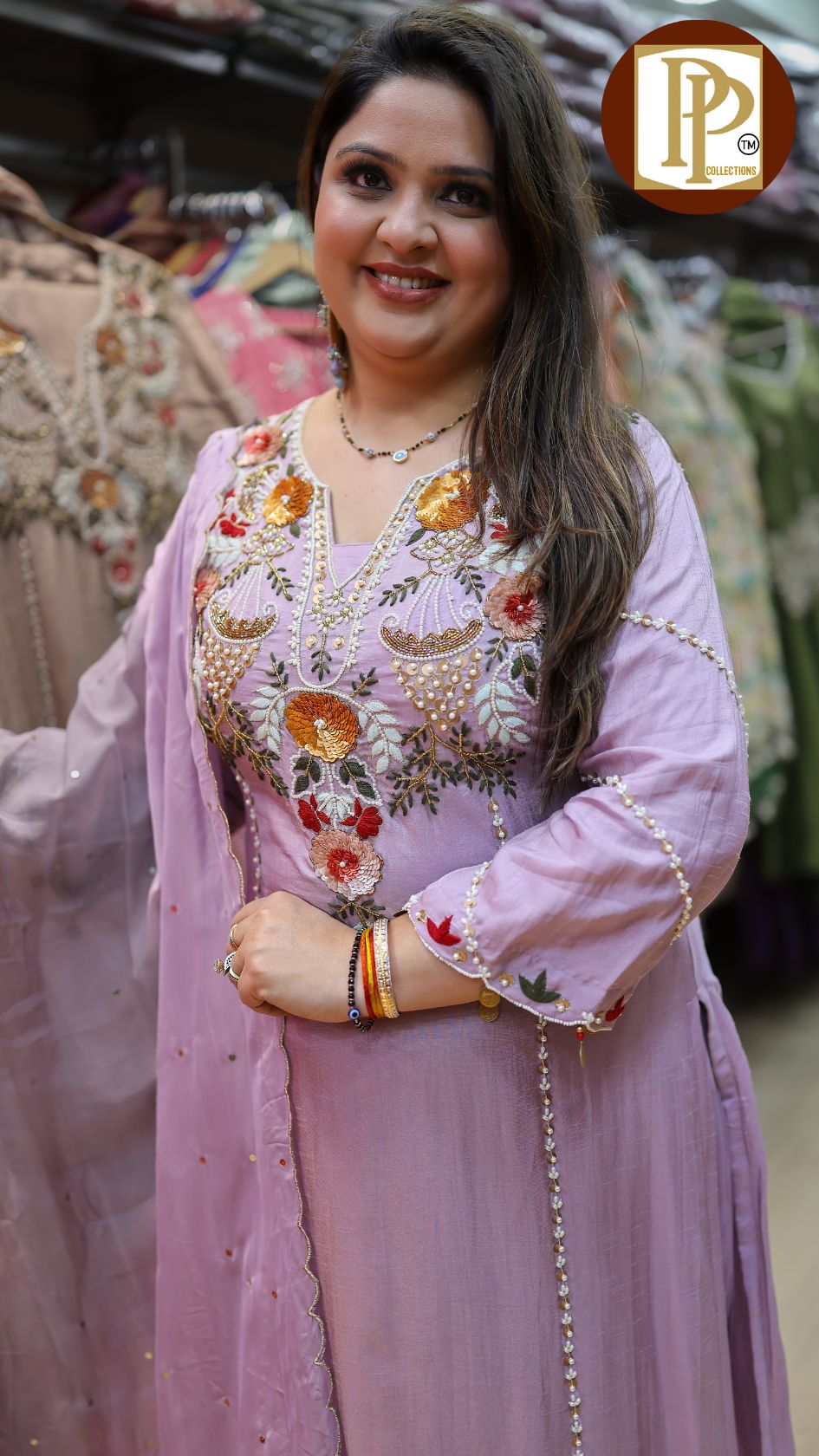 Work Type : handwork & threadwork in kurta with matching dupatta & pants .
