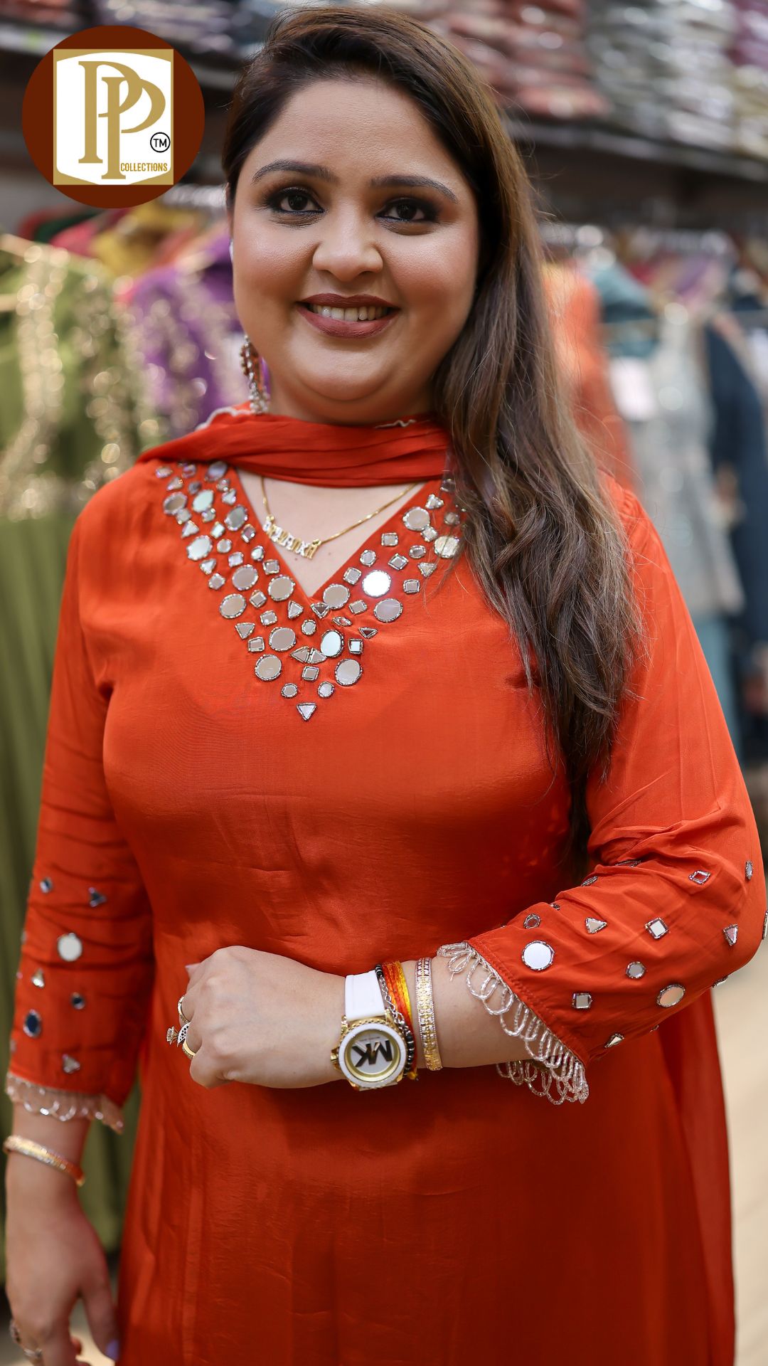 Description : 3pcs pant set Fabric Type : crepe Style : aline kurti with pants . Work Type : original mirror work in kurti with matching pants & dupatta .