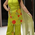 Work Type : full threadwork orignal mirror work stone work cells work in kurta with matching divider & choker neck dupatta .