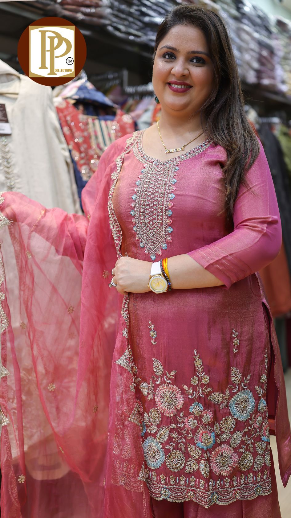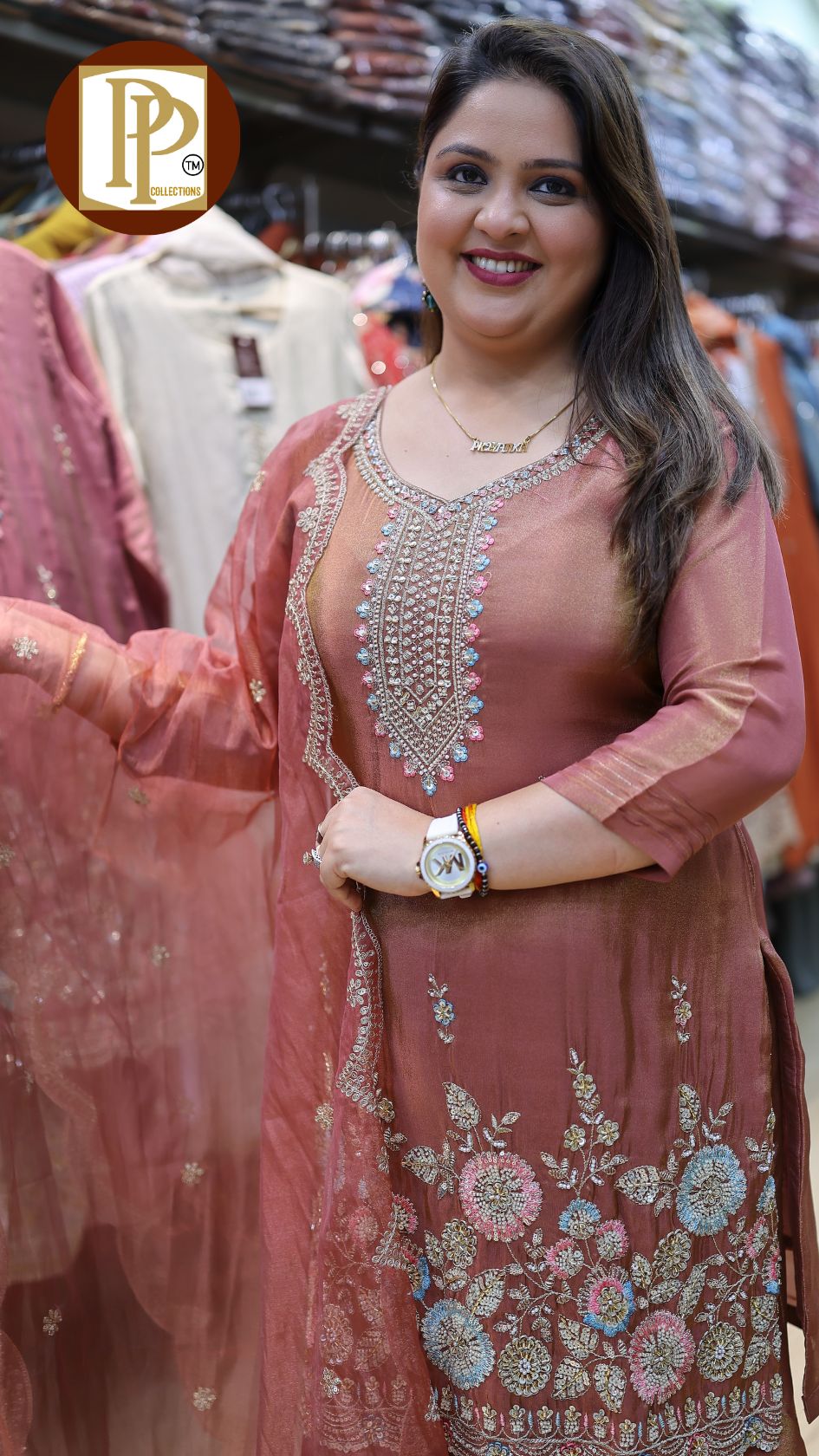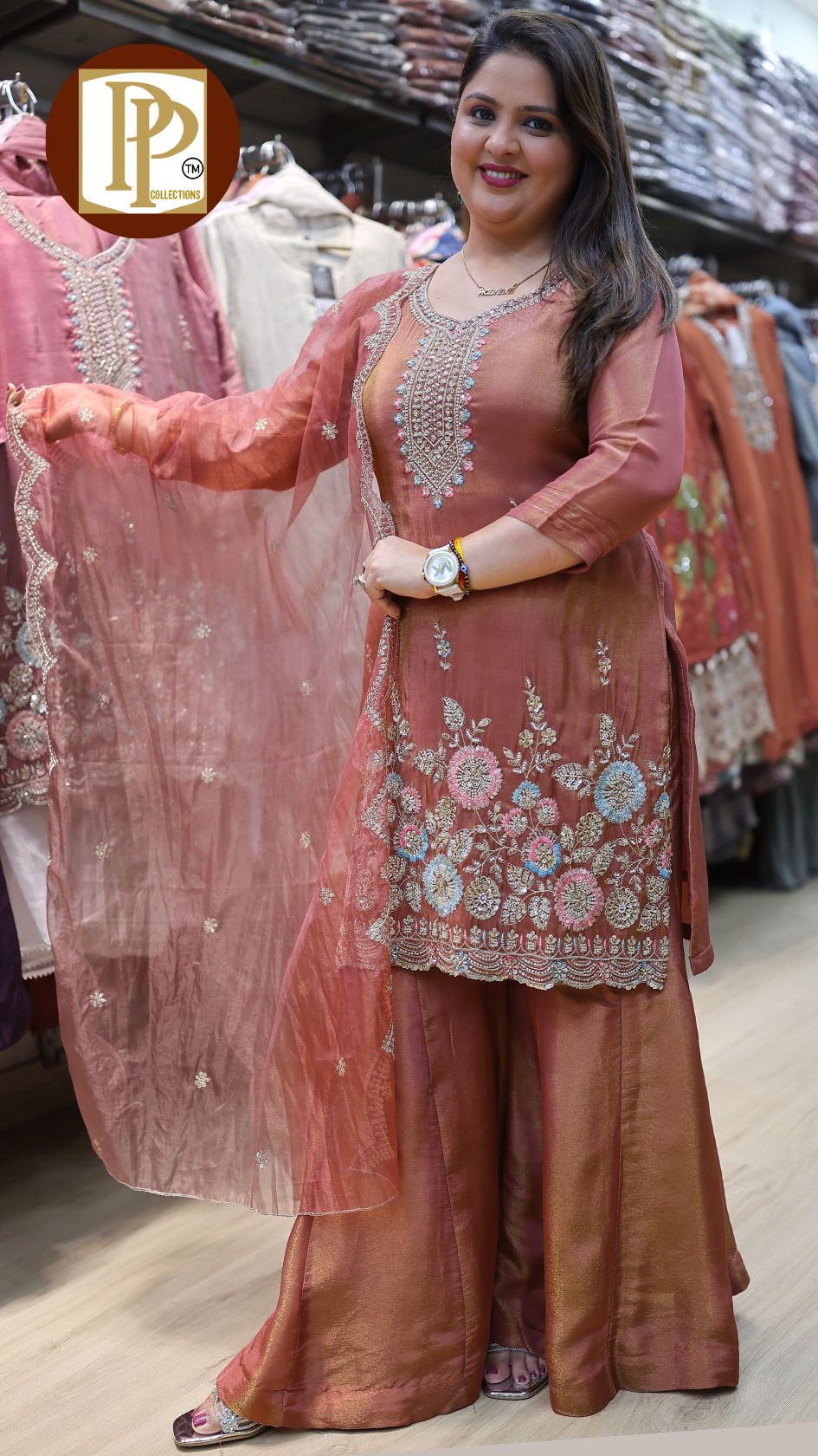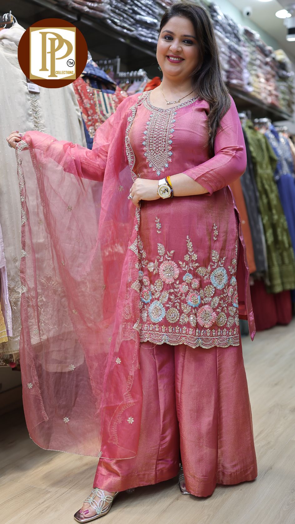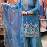 Work Type : full heavy handwork stone work in kurta with matching divider & dupatta.