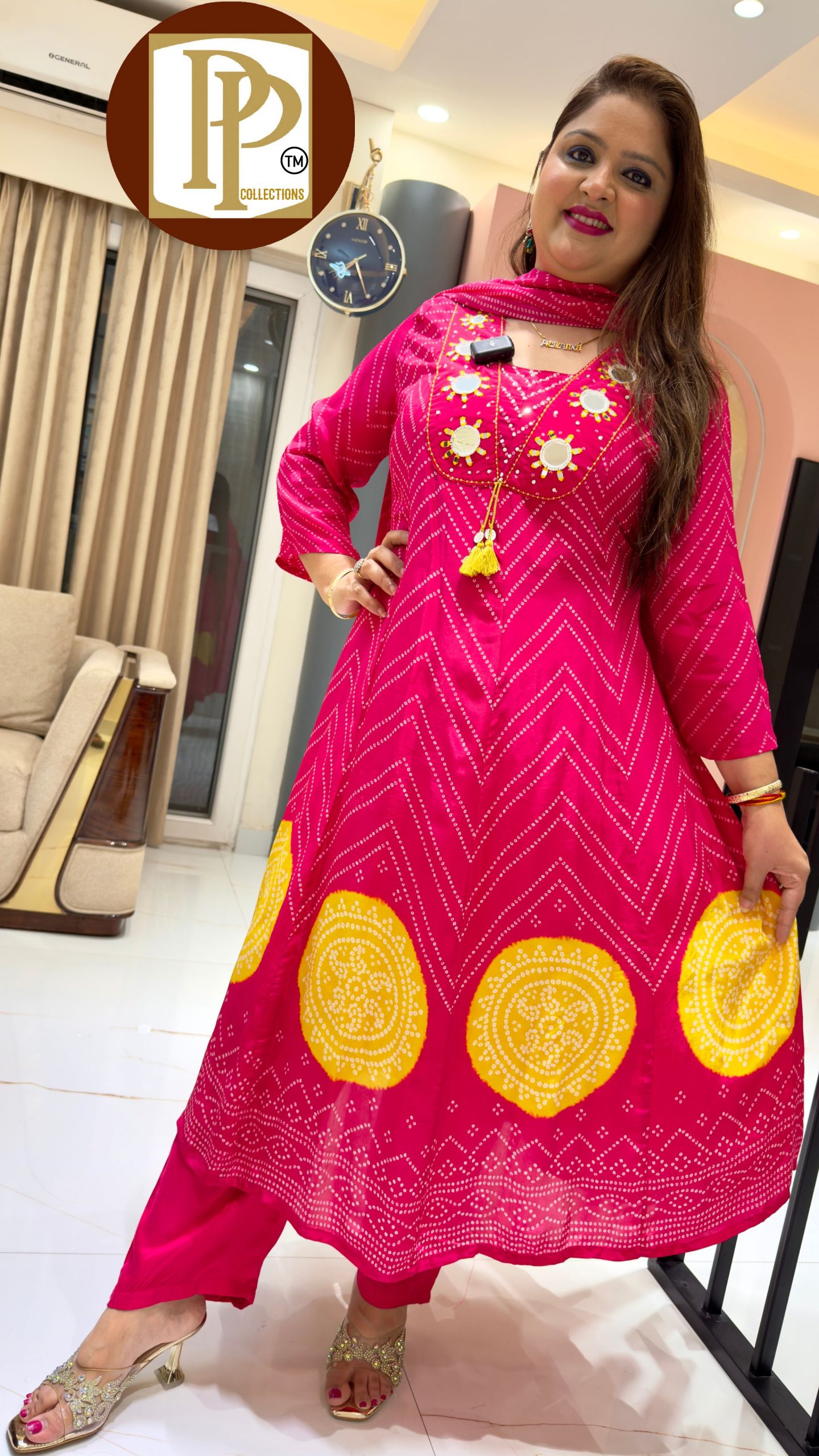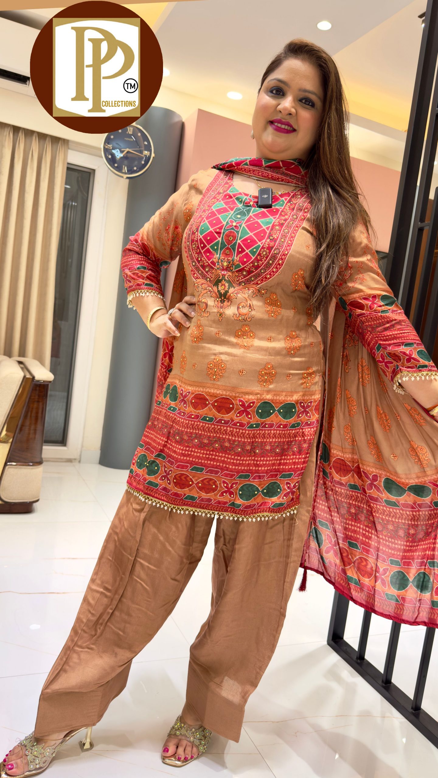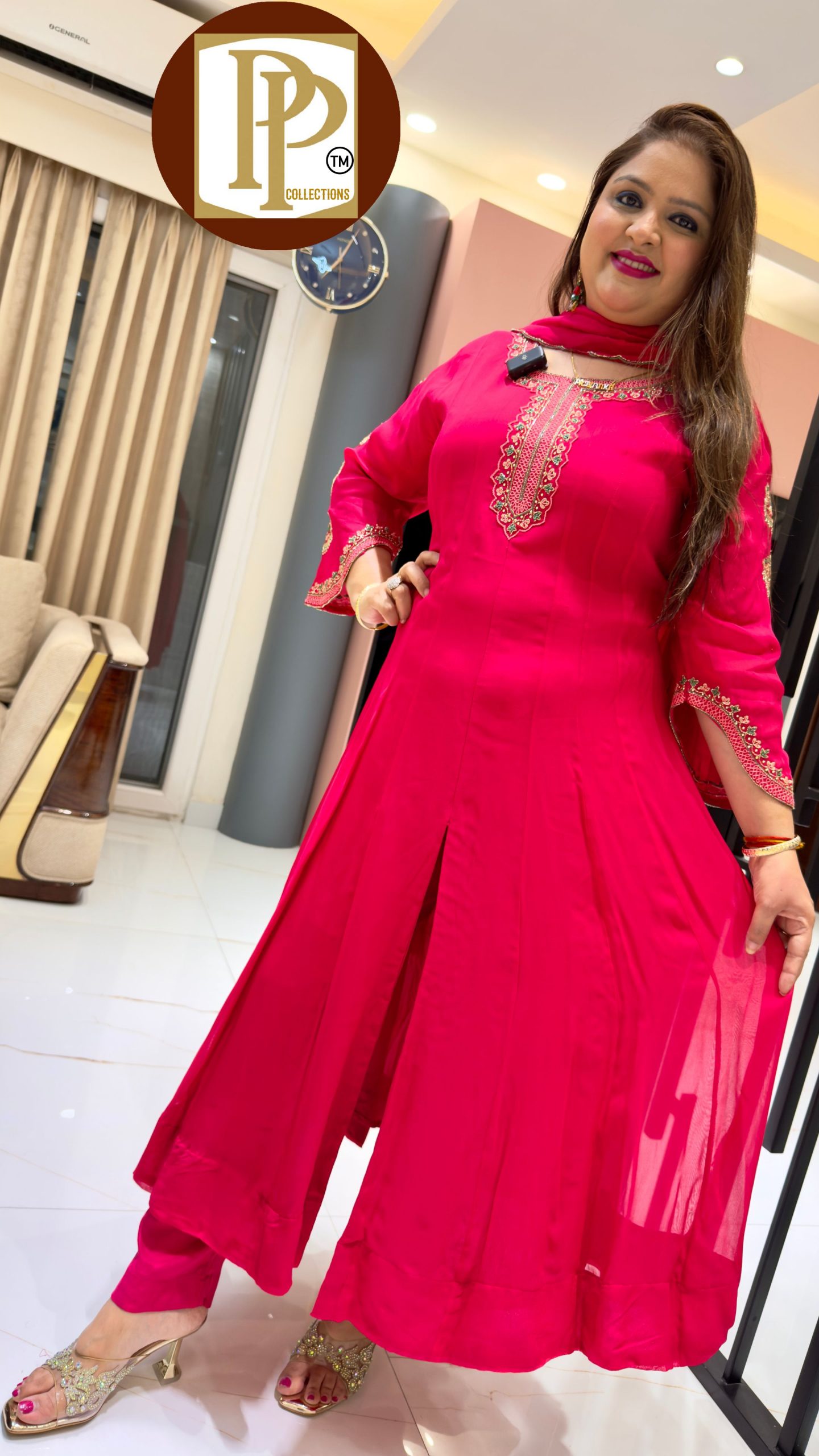 Description : 3piece Pant Set Fabric Type : Chinnon Style : A-Line Pattern Work Type : Full Have Cut Dana Hand Work With Pocket Matching Dupatta.