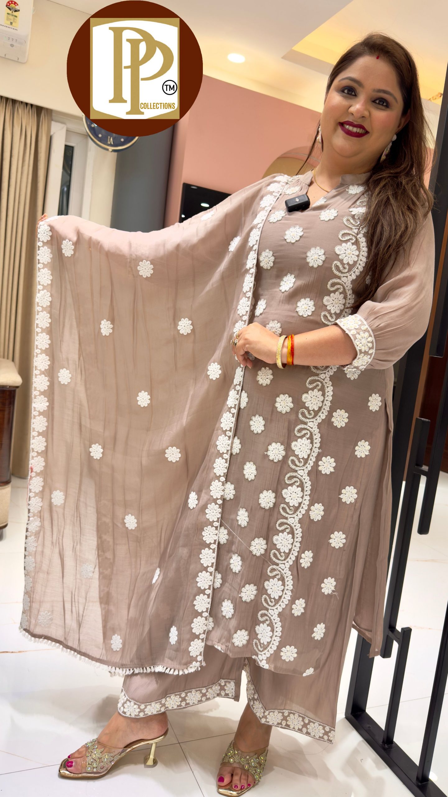 Description : 2piece Plazzo Set Fabric Type : Crepe Style : Kaftan Co-ord Sets Work Type : Tow Ton Print On Zari & Original Mirror Work With Matching Dupatta.