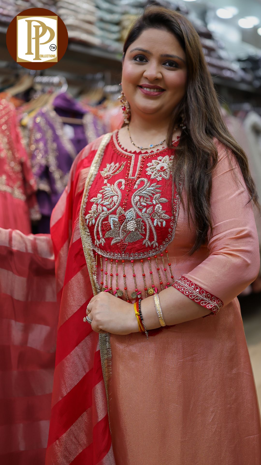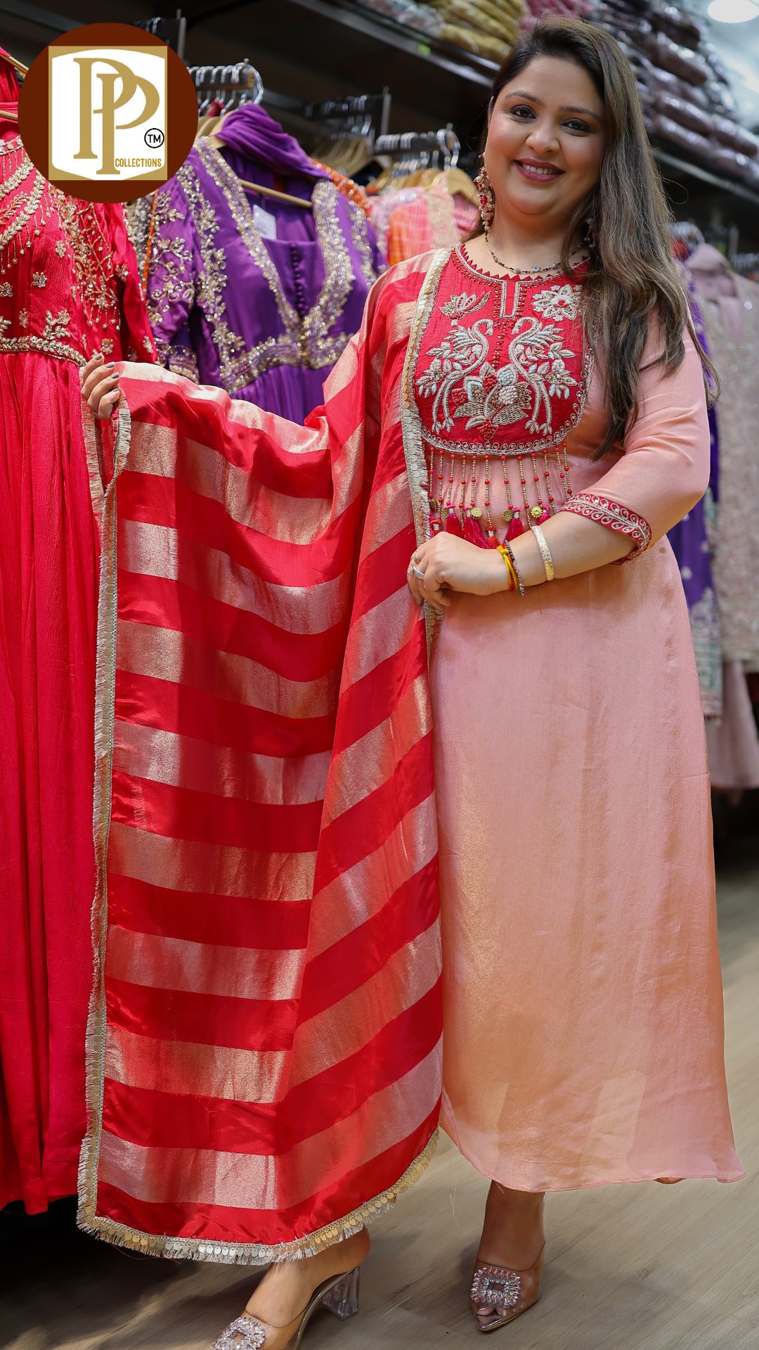 Description : 3pcs pant set Fabric Type : tissue Style : aline anarkali with pants Work Type : heavy threadwork handwork tassel work in anarkali with matching dupatta