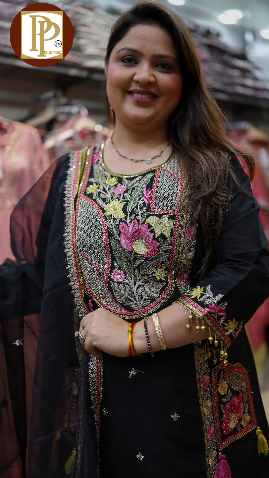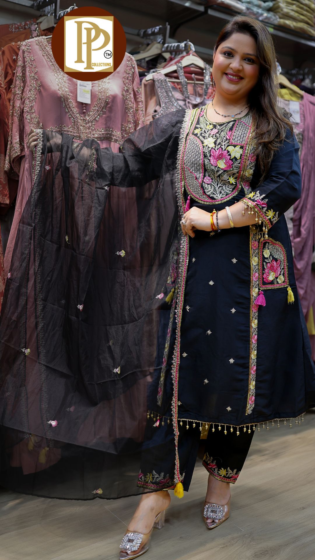 Description : 3pcs pant set Fabric Type : silk Style : aline anarkali with pants Work Type : full threadwork & handwork with matching pants & dupatta .